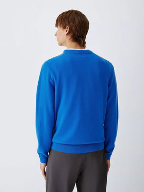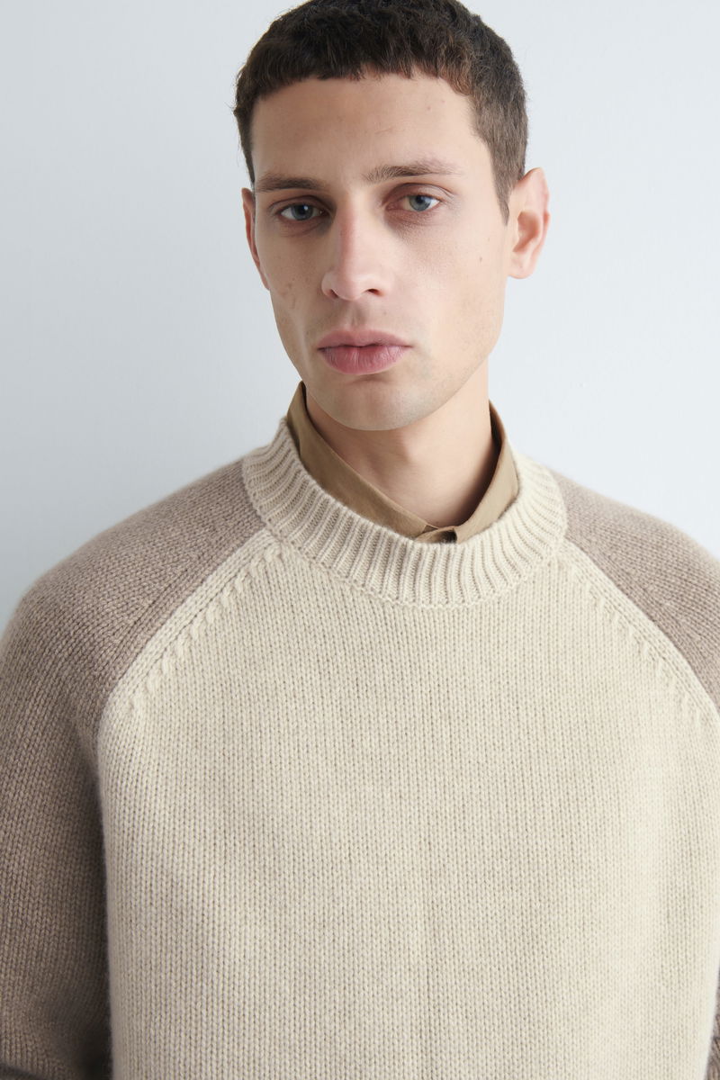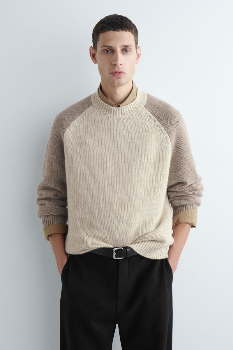 This season the menswear team renew the classic cashmere jumper with a laid-back appeal. This piece is crafted from luxuriously soft Good Cashmere Standard® yarn and designed with a relaxed shape, crew neck and subtly colour-blocked sleeves.