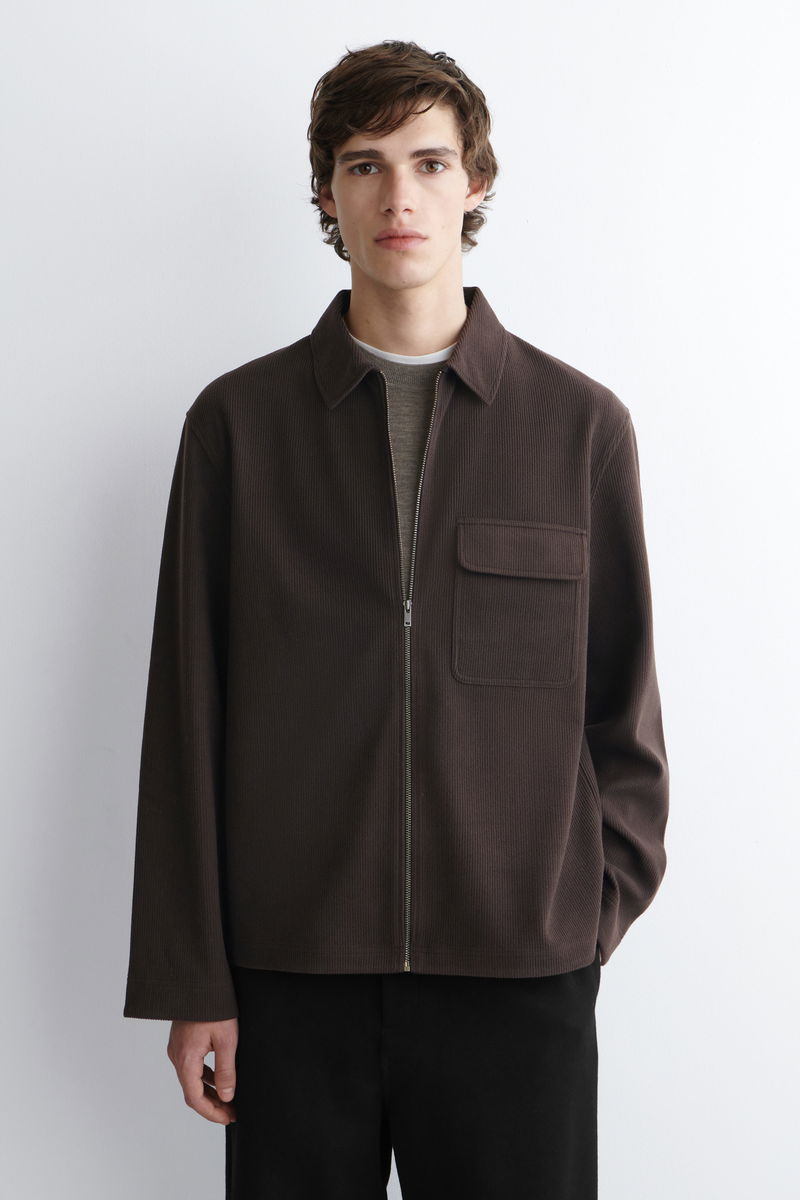 This season, the COS menswear team interpret wardrobe staples in soft, tactile fabrics. This modern overshirt is made from corduroy-jersey and designed with a pointed collar, patch pocket and a silver-tone zip. It's an easy option for relaxed days.