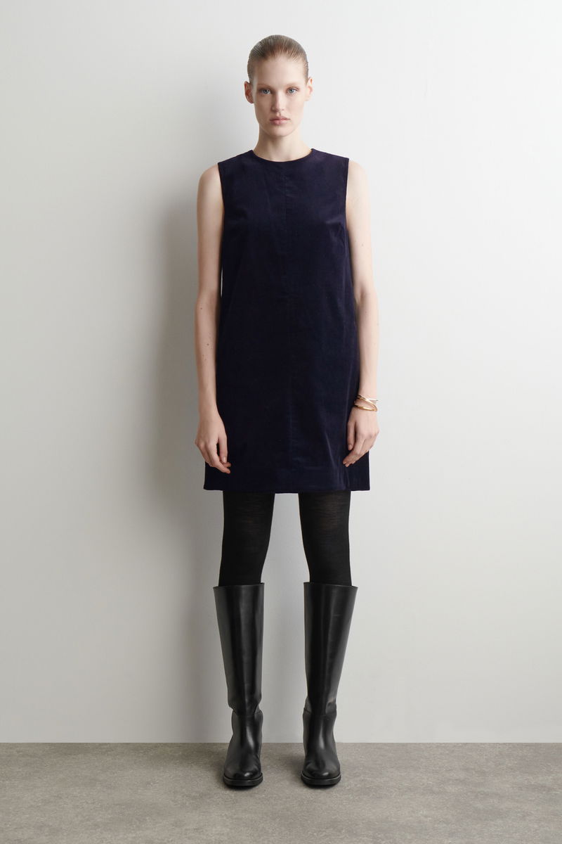 Borrowing from '60s silhouettes, this shift dress is made from tactile cotton-corduroy and cut in a minimal A-line shape.