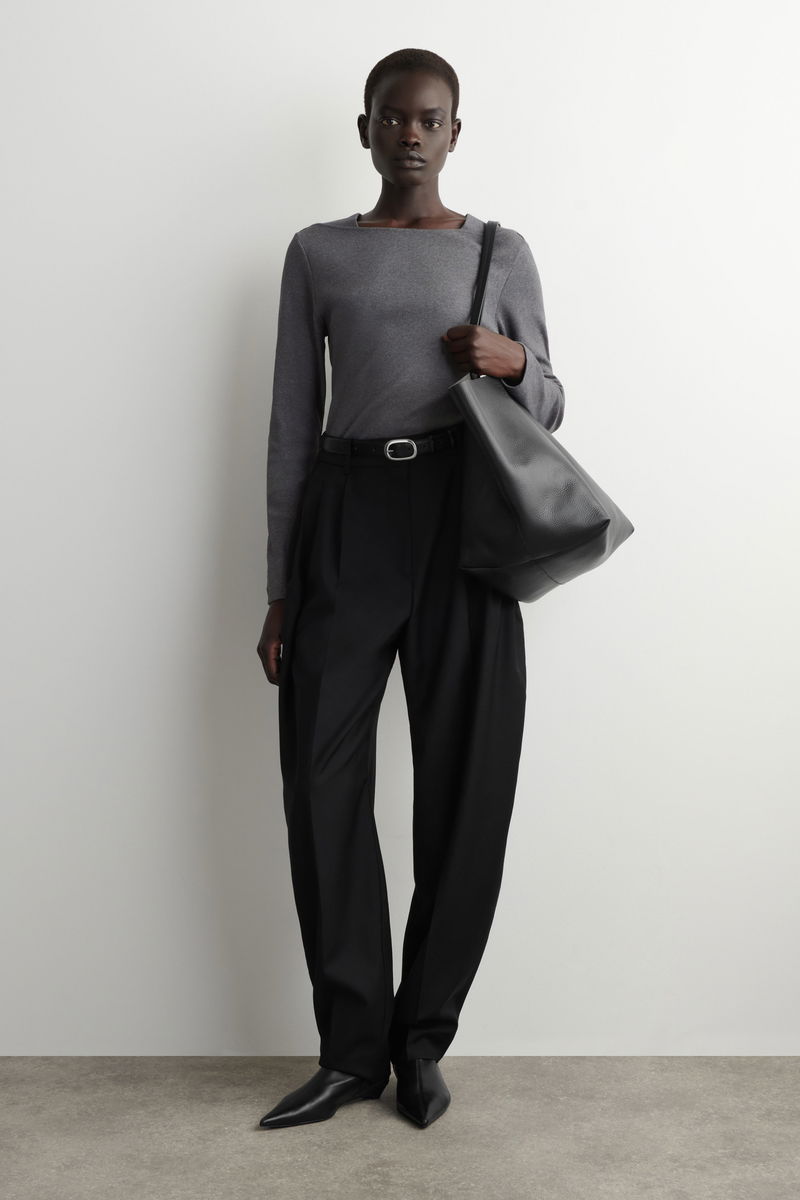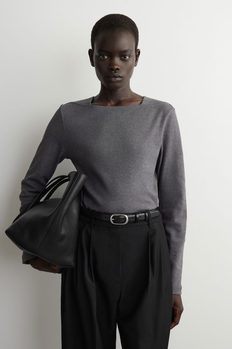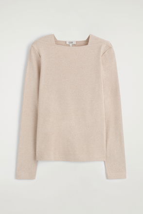 Everyday silhouettes are a COS speciality, this top being no exception. Crafted from softly ribbed cotton, this long-sleeved top has a wide neckline that overlays triangle inserts at the shoulders, creating a layered effect. Its neutral hue makes it the perfect styling piece.