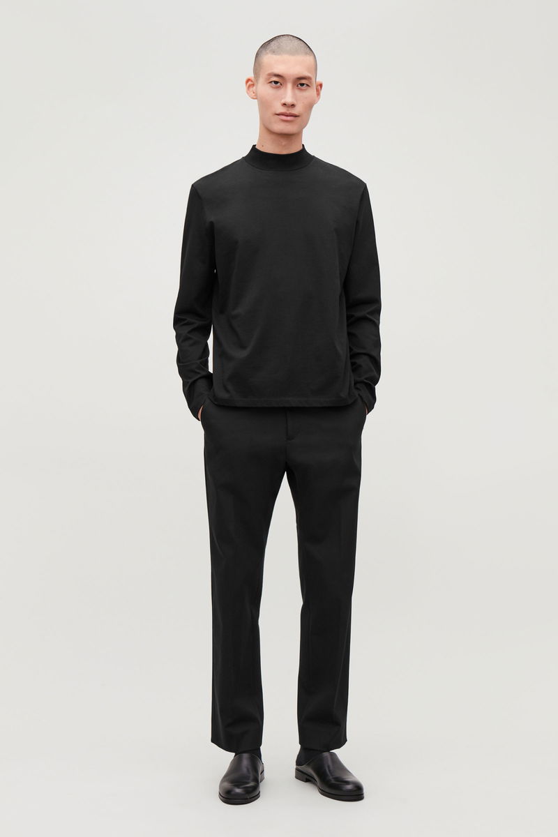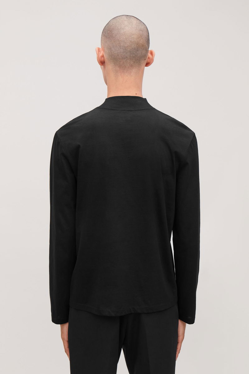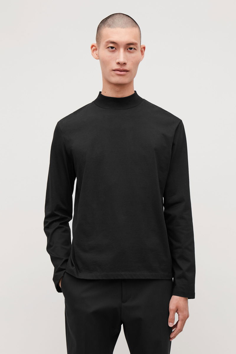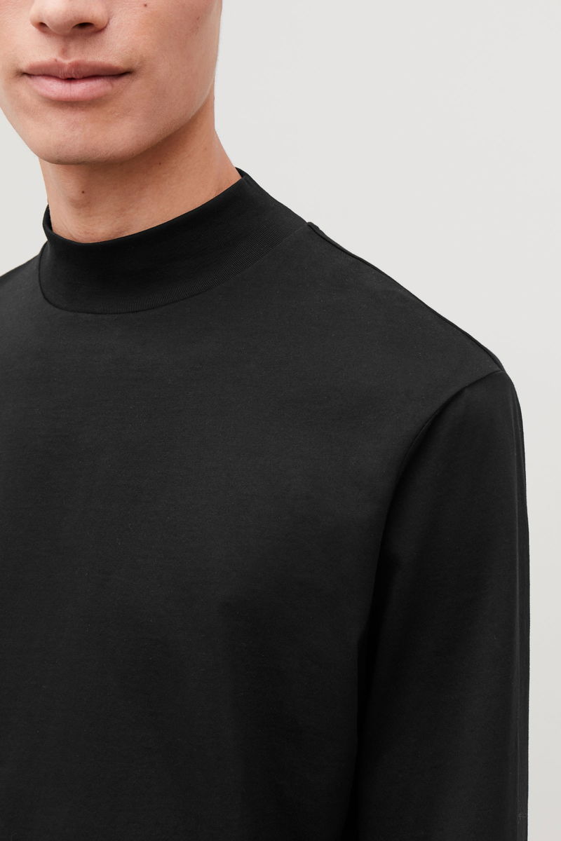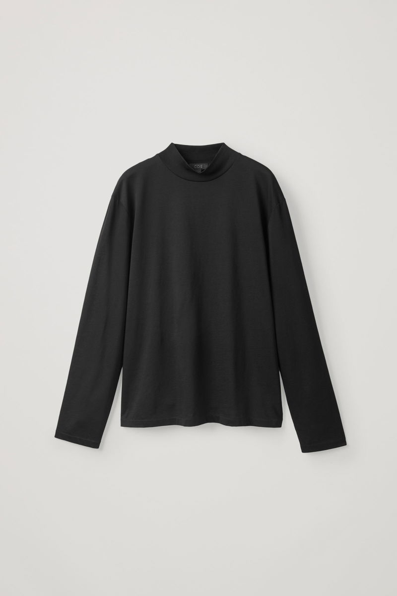 A timeless wardrobe staple, this top is made from fine cotton jersey with tonal topstitching. Designed to be pulled on, it is completed with a mock neck and long sleeves.