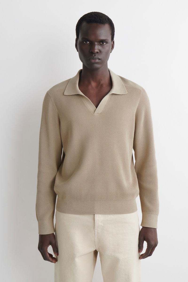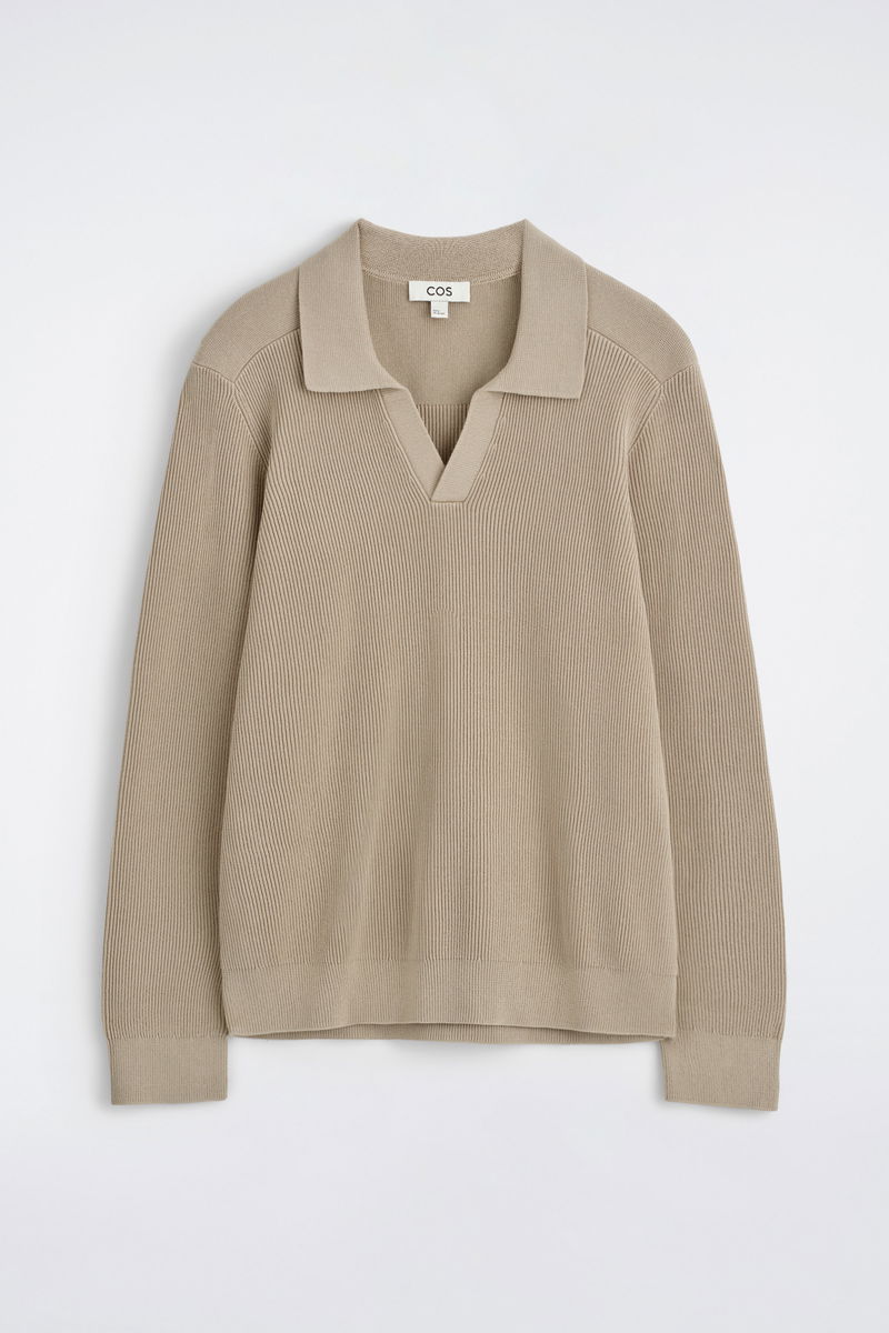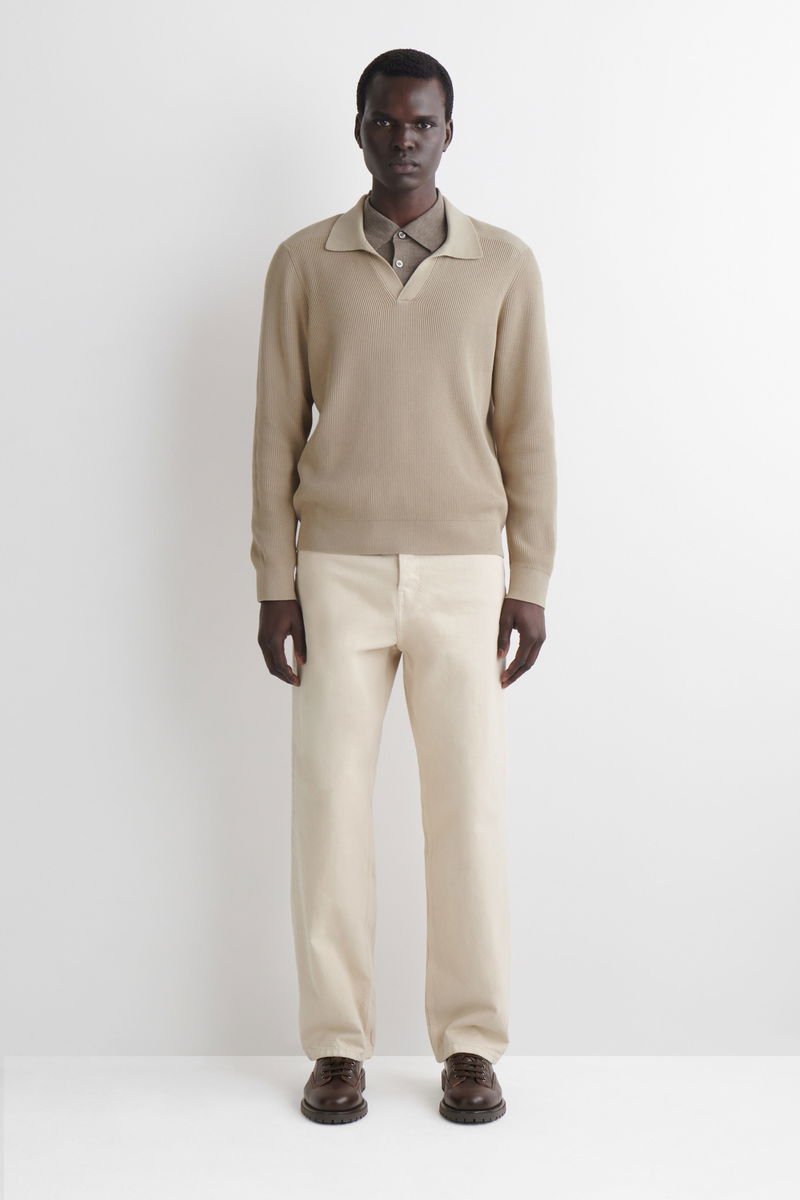 This timeless polo jumper will transition your wardrobe into the cooler seasons. Offered in versatile navy, it's knitted from light yet tactile cotton and features a ribbed open collar, cuffs and hem. Style it with classic denim.