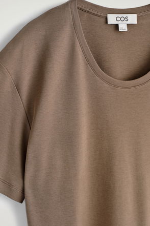 Cut from a lightweight cotton-silk blend, this short-sleeved top is a classic style with a knitted quality. A straight fit, it has ribbed detail at the round neck, sleeves and hem.