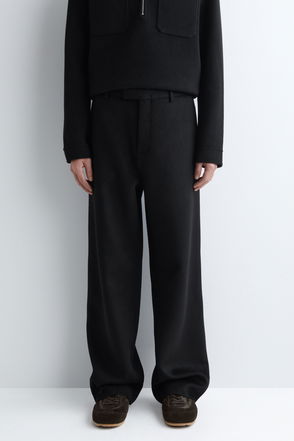 These modern slim trousers will anchor the smart-casual wardrobe. Offered in a classic black tone, they're made from durable cotton and tailored in a streamlined shape with press studs at the waistband for a perfected fit. Style them with Oxfords or Derbies.