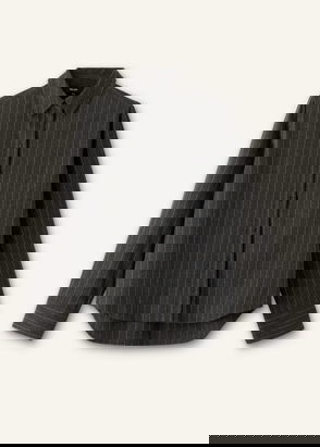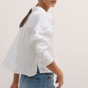 This short-sleeved shirt is made from a crisp cotton mix fabric that is crinkled for a textured effect. A boxy fit, it has two large patch pockets, a pointed collar and a concealed placket with visible top buttons.