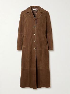 This striking coat charges even the simplest of outfits with personality. Rendered in a deep brown tone, it's crafted from supple crocodile-embossed leather and designed with an angular collar, tonal topstitching and a full lining for effortless layering.