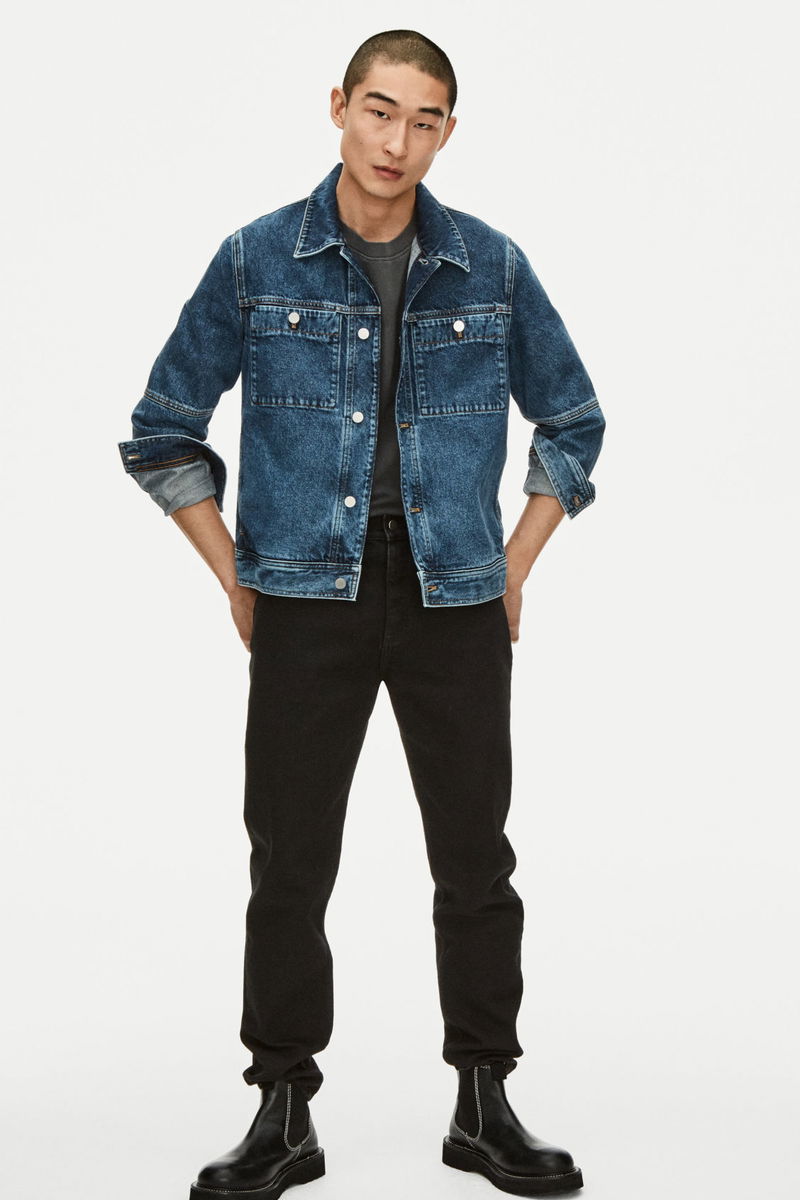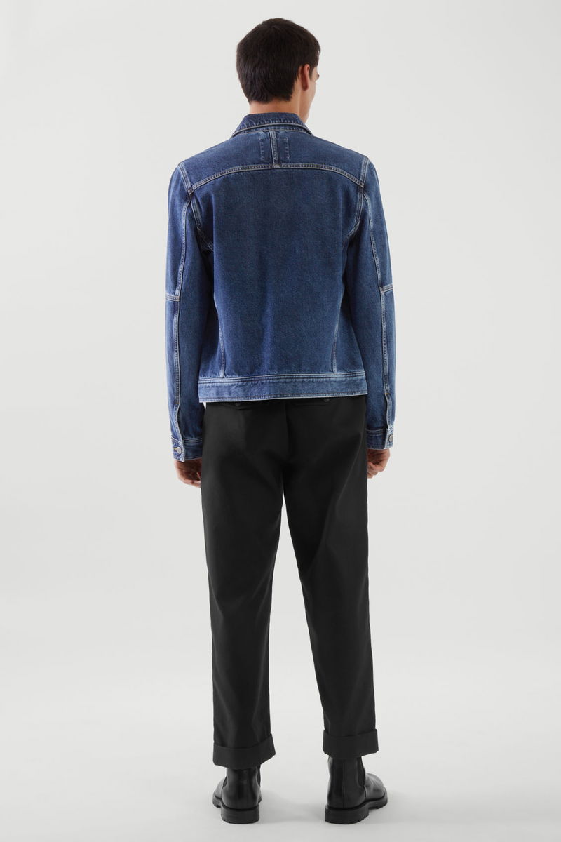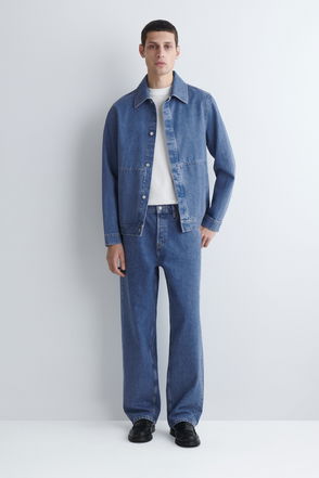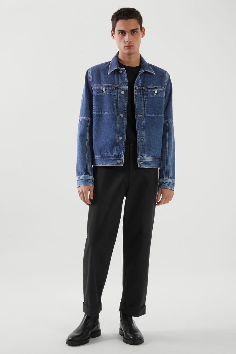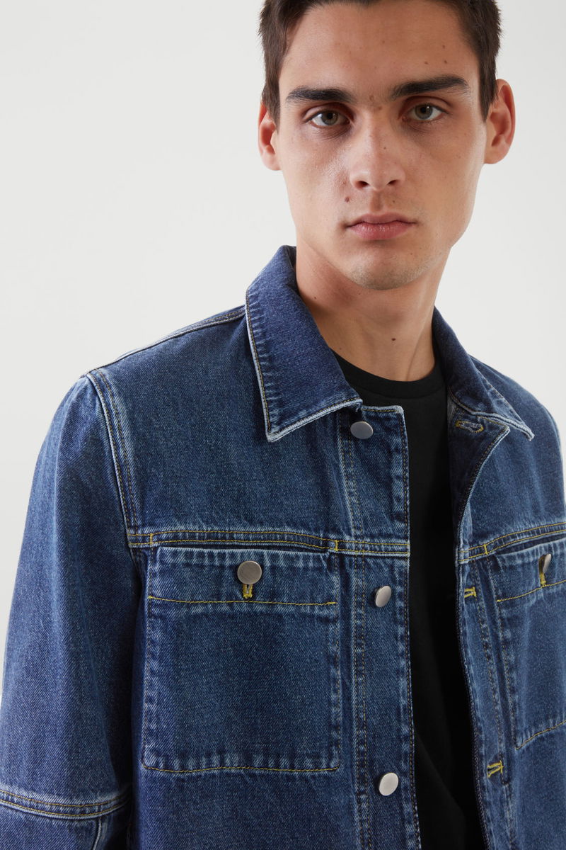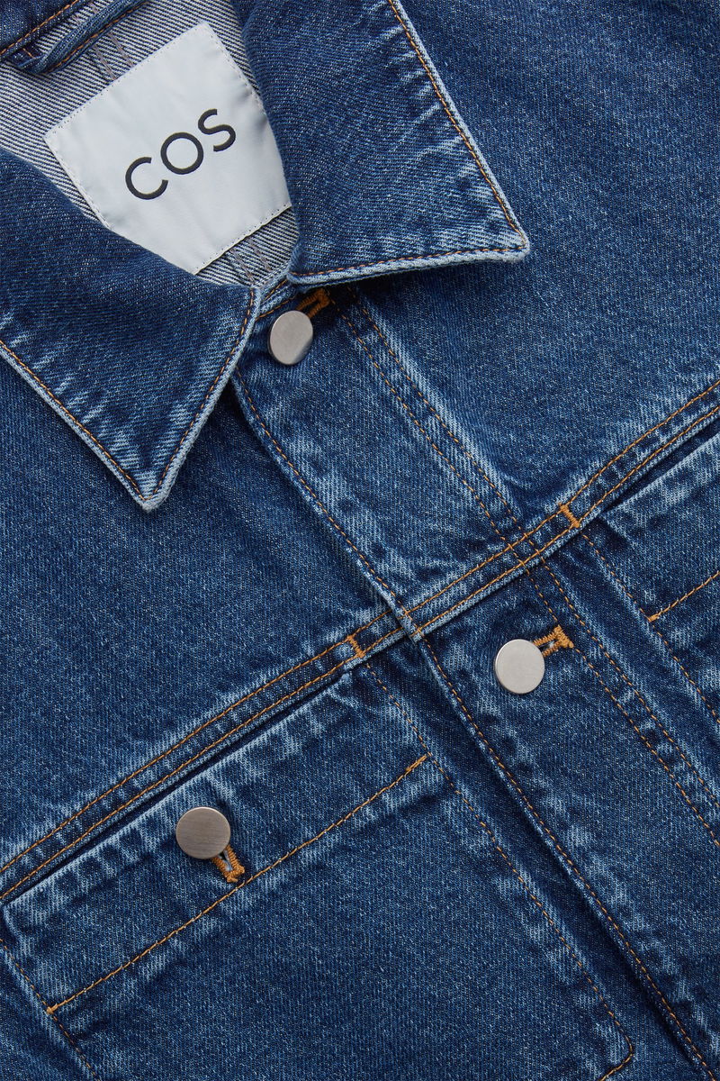 Responsibly crafted from an organic-recycled cotton blend, this blue denim jacket is cut for a regular fit and is slightly cropped for versatile layering. The seam detailing, chest pockets and silver buttons add a workwear finish.