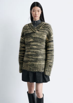 The seasonal shift calls for a knitwear refresh, and this V-neck jumper is deserving of a place in your wardrobe. It's been expertly knitted from a heavyweight blend of RMS-certified mohair and merino wool – the former was chosen for its fluffy texture, the latter for its natural warmth. Highlight the cropped hem by styling it with high-waisted trousers or maxi skirts.