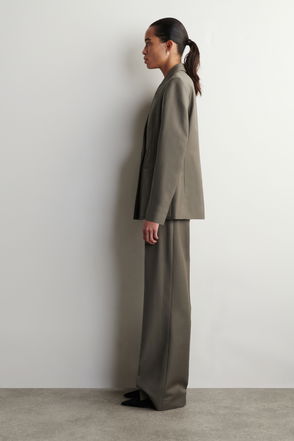 The cut of this blazer is what makes it stand out. Shaped for a double-breasted silhouette, it has a subtly cropped body and straight-cut hem. Crafted from a blend of linen and ECOVEROTM Viscose in a bright-green hue that's perfect for summer, it has considered finishes like the buttoned tab at the chest pocket and the contrasting tortoiseshell buttons. For a complete set, wear with its matching item.