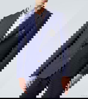 The double-breasted blazer is an archetypal piece rendered in linen for Summer 2024. Notch lapels, functioning cuffs and the double back vent borrow from traditional tailoring, while the breathable nature and refreshing tone of the mélange blue fabric lend it to summer occasions. Style it as a suit with the matching trousers.