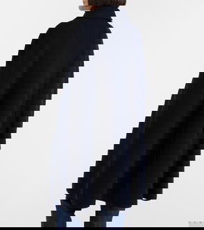 This sophisticated cape channels the effortless appeal of autumn/winter styling. It's crafted from a merino wool blend that's double-faced for a premium handle and designed with a tonal scarf that drapes around the neck.