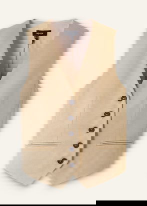 The COS womenswear team took a modern view of traditional suiting when designing this waistcoat. Offered in an enduring black hue, it's crafted from a lightweight blend of RWS-certified wool and TENCEL™ Lyocell that's double-faced for a premium, supremely soft hand feel. It's designed with a high V-neckline, shaping darts and a row of tonal buttons.