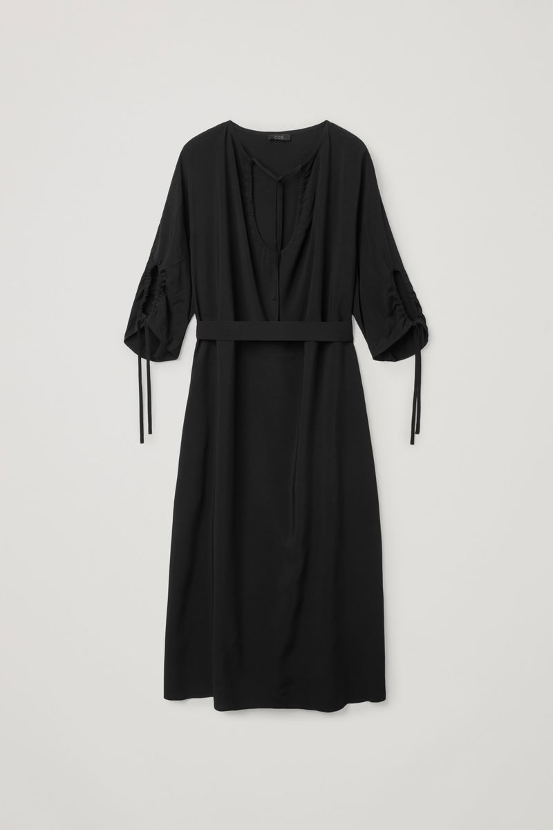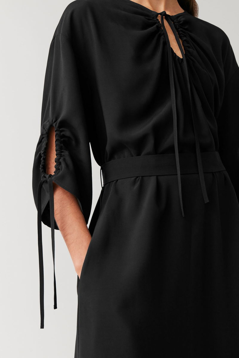 Classic with distinct details. Cut with an A-line fit through the skirt, this dress has elasticated drawstring cuffs.