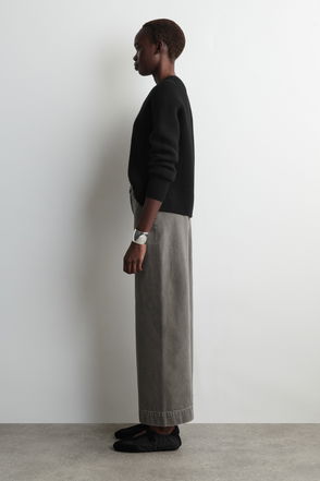 These modern trousers are an evolution of house codes. The lightweight TENCEL™ Modal-blend fabric has a soft sheen that catches the light, while the deep colour palette proposes an elevated option for evening. Style them with the matching top.