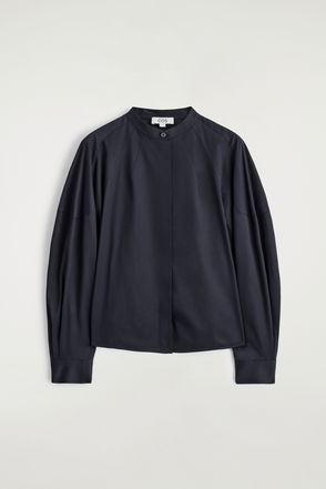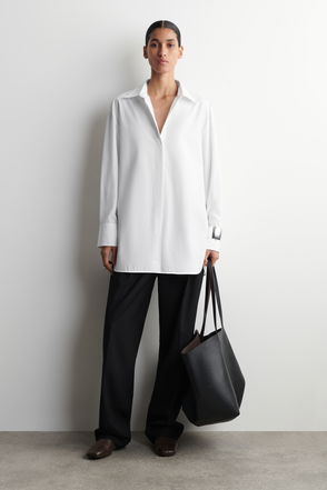 Autumn Winter 2025 takes the modern wardrobe to new heights: the epitome of quiet confidence. Distinctive, architectural, precise – the tailored shirt is a cornerstone of the COS collection. This tuxedo-inspired piece is made from cotton-poplin selected for its crisp hand feel and features a bib-front detail, mother-of-pearl buttons and an exaggerated folded collar that was specially designed in our London atelier. The grosgrain hanger loop is signature to the capsule.