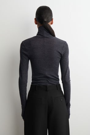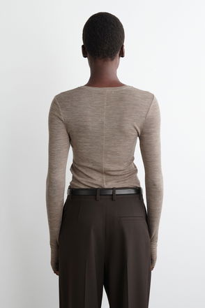 Reimagined with a contrast velvety flock print, this sweatshirt-style top is made from a smooth, lightweight wool blend with a hint of stretch. Fastened with a concealed back zip, it has a collarless neck, long raglan sleeves and wide self-fabric trims at the cuffs and hem.