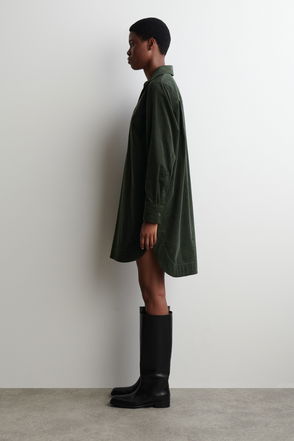 Inspired by utility wear, this dress is made from a lightweight fabric with a soft hand feel. A long, straight shape, it has statement patch pockets at the chest, a mid-length zip fastening and it is finished with double topstitching at the edges.