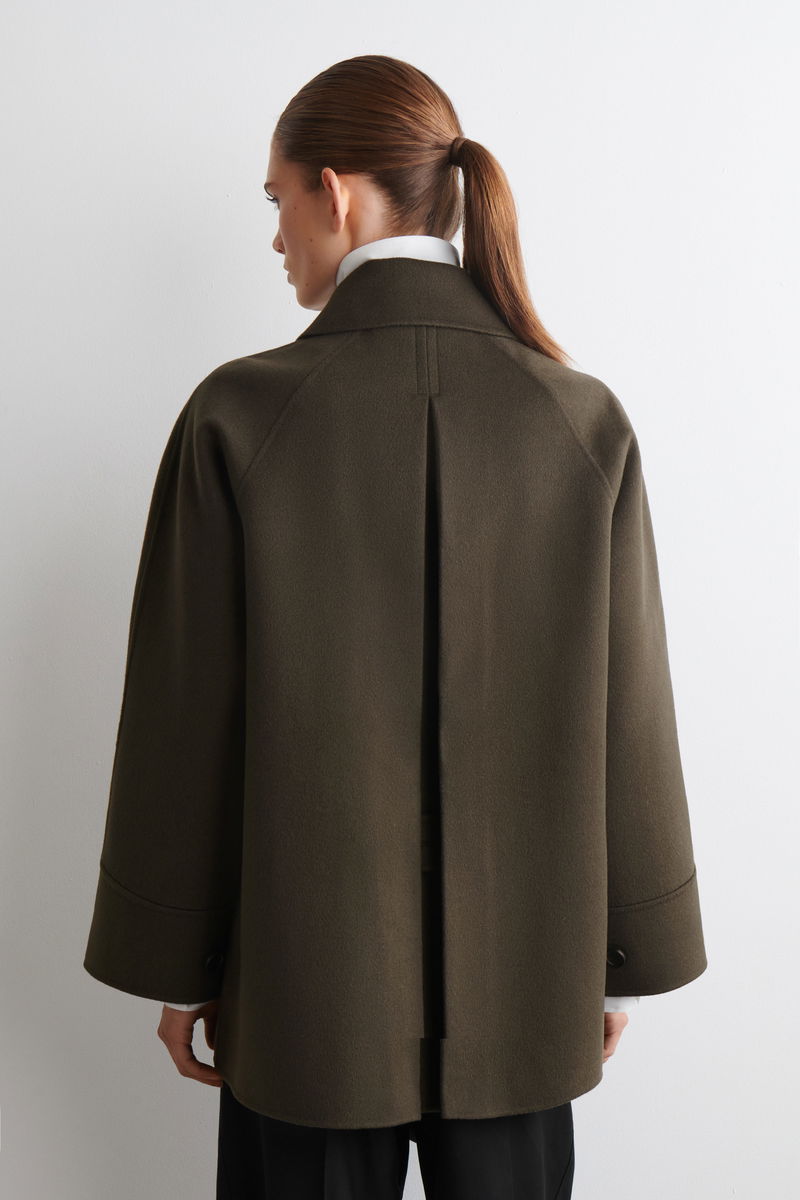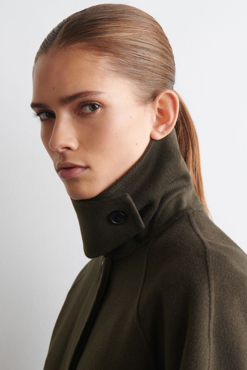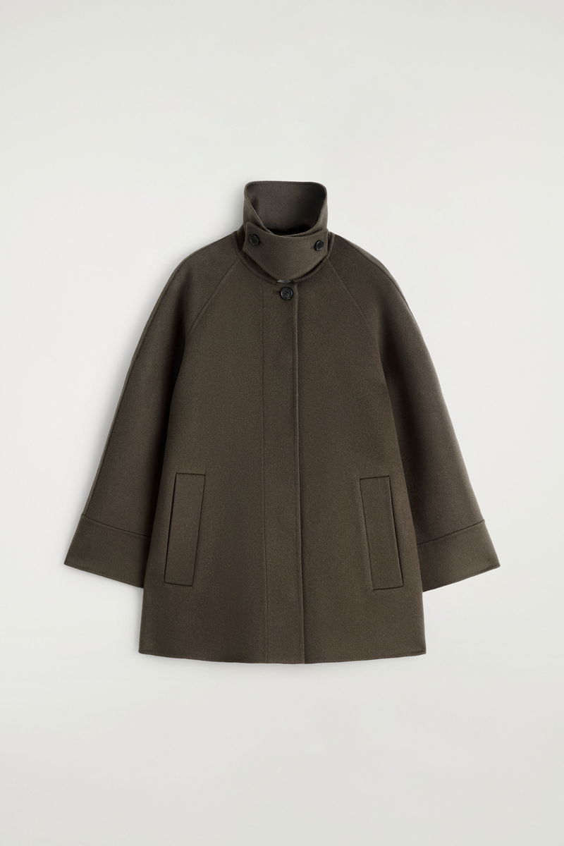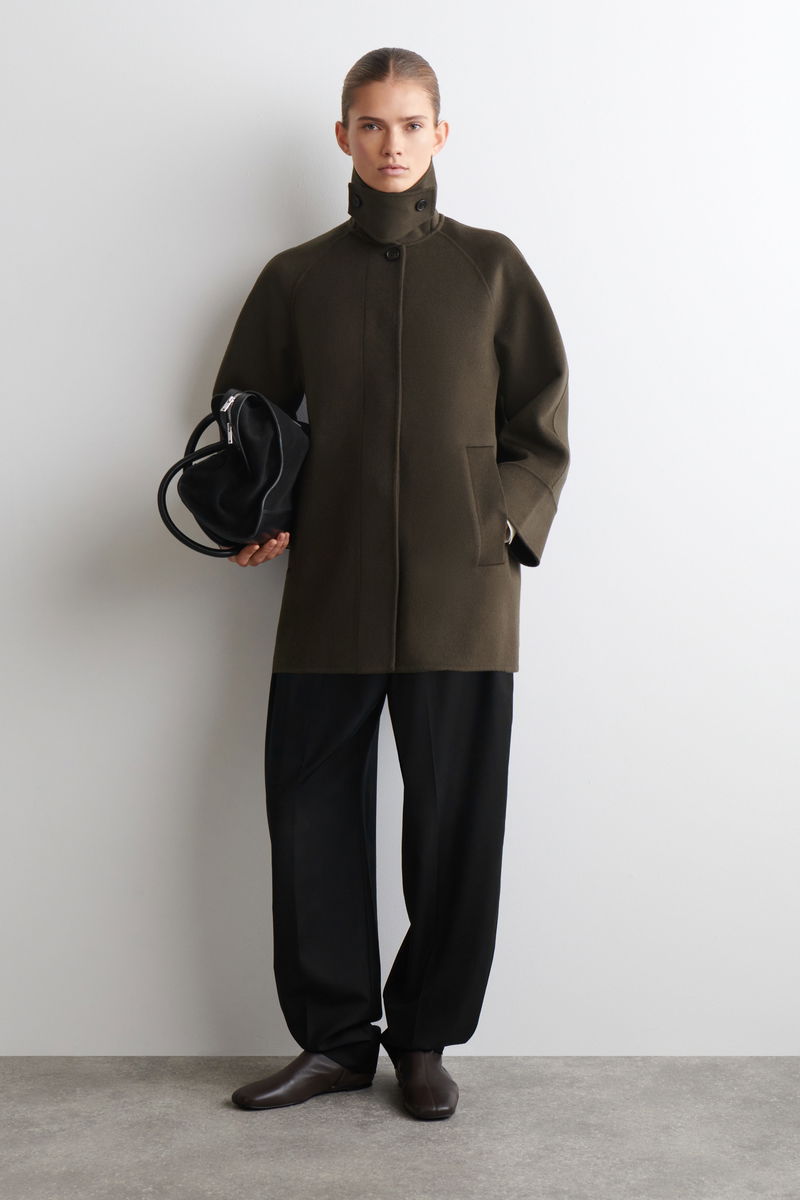 FUNNEL-NECK DOUBLE-FACED WOOL SHORT COAT