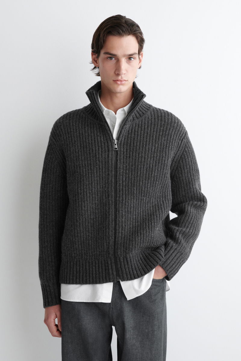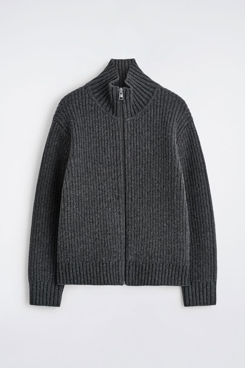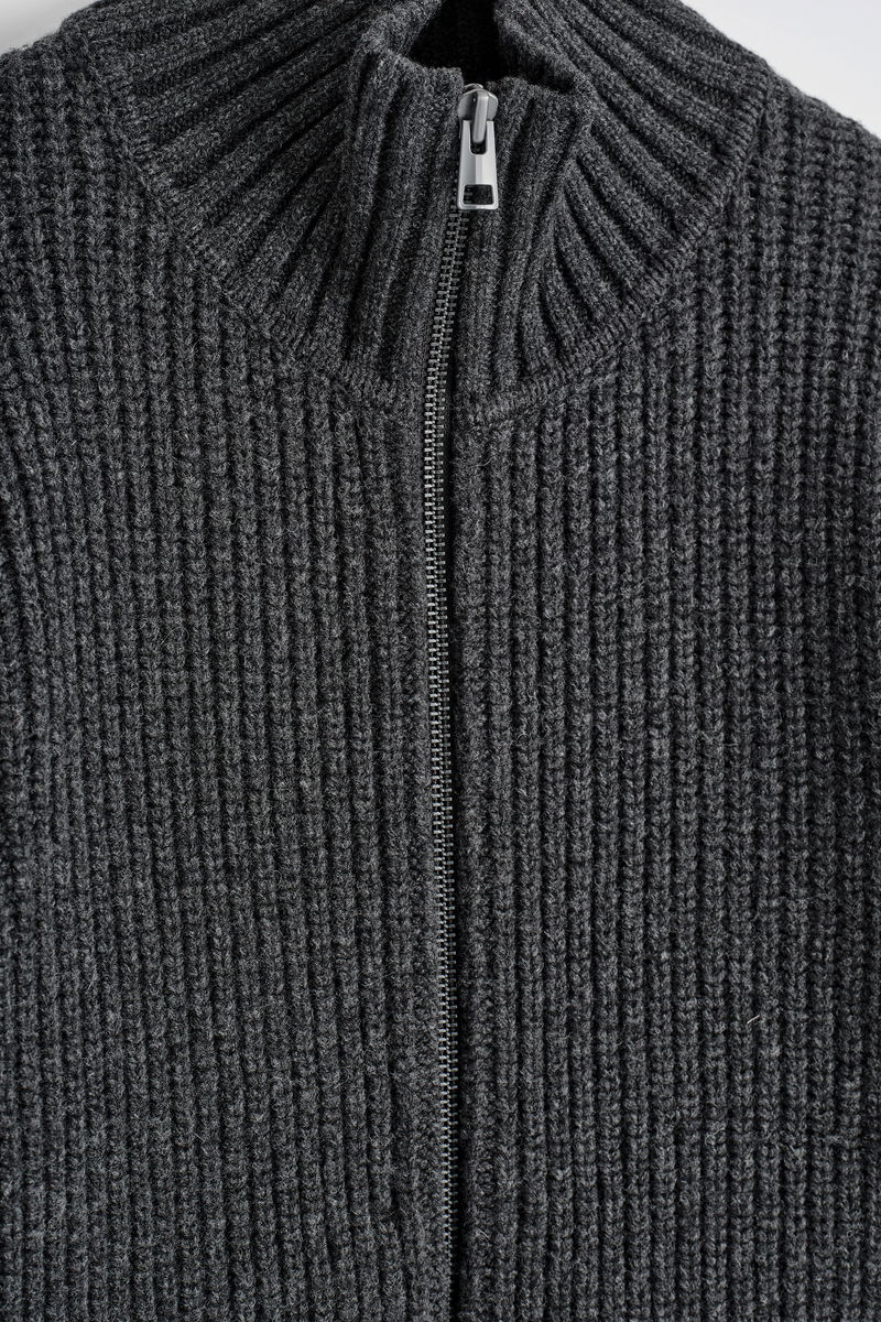 This modern jacket is knitted from soft, naturally insulating wool and designed with a silver-tone zip that can be fastened to the top to highlight the funnel-neck collar. The relaxed fit is roomy enough to accommodate layers underneath.