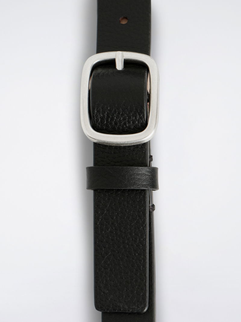 Crafted from premium Italian leather, this classic belt is a timeless piece that's essential to any wardrobe. It's crafted from supple grained leather in an enduring black tone that contrasts the brushed silver-tone buckle.