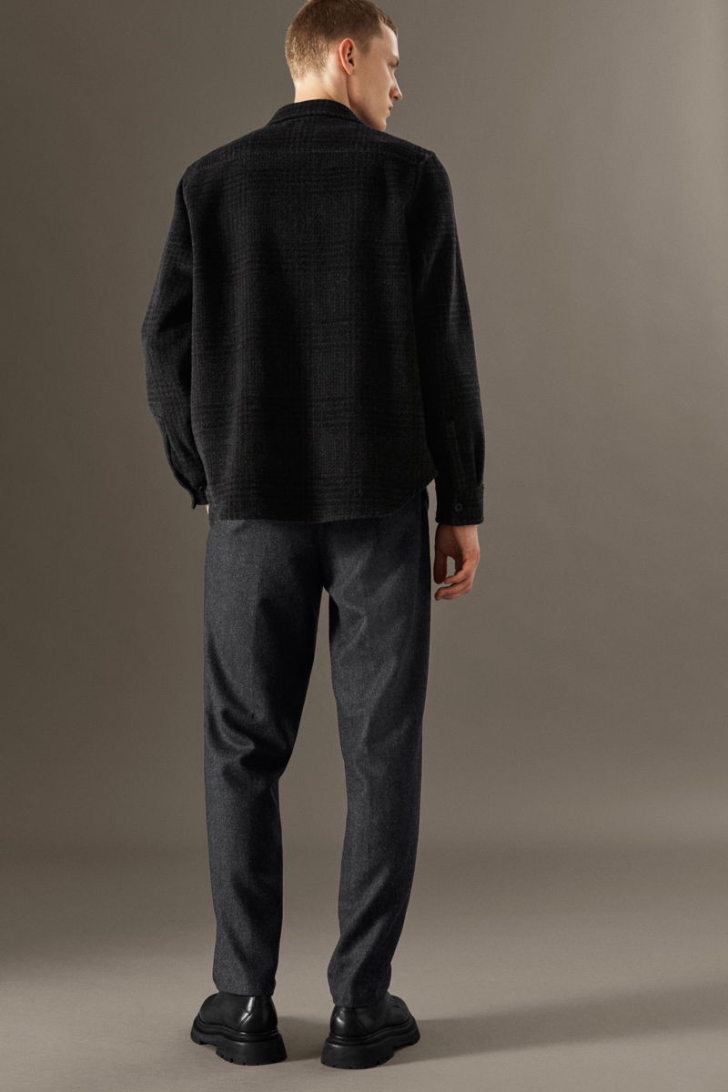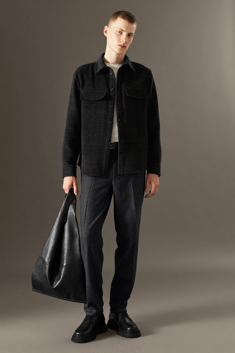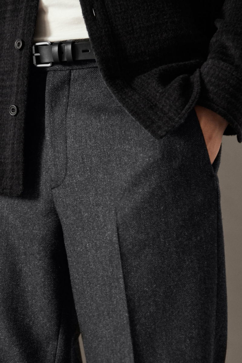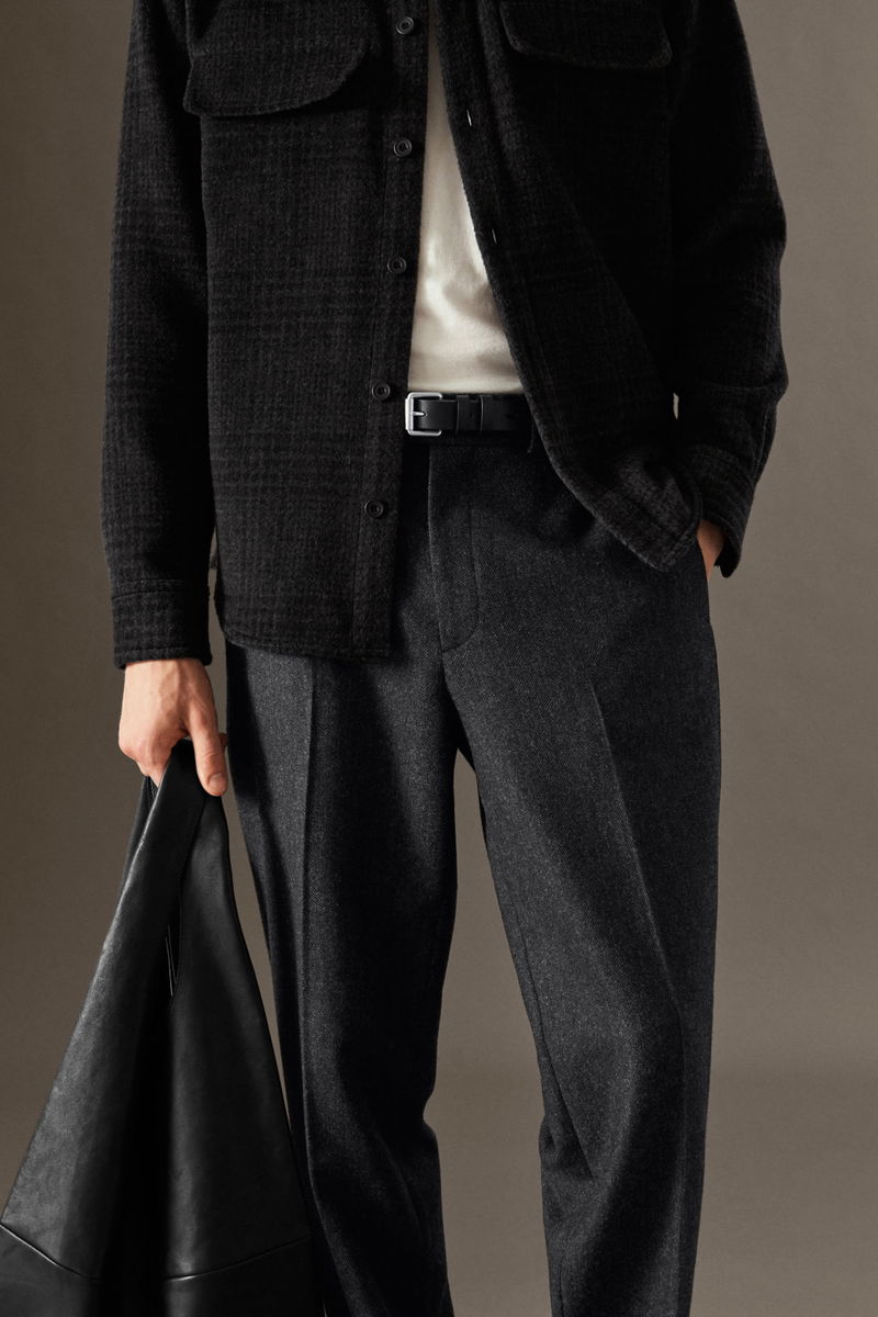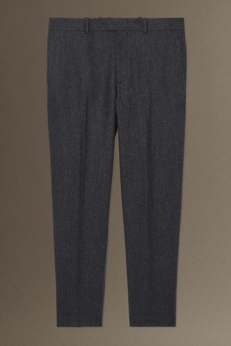 These straight-leg trousers sit on the smarter end of the menswear collection, thanks to the precise pressed creases and neat welted pocket. They're offered in a timeless dark-grey shade and expertly crafted from a tactile, 100% wool-herringbone cloth that has been certified according to the Responsible Wool Standard. Wear them with a shirt, Derby shoes and the coordinating blazer.