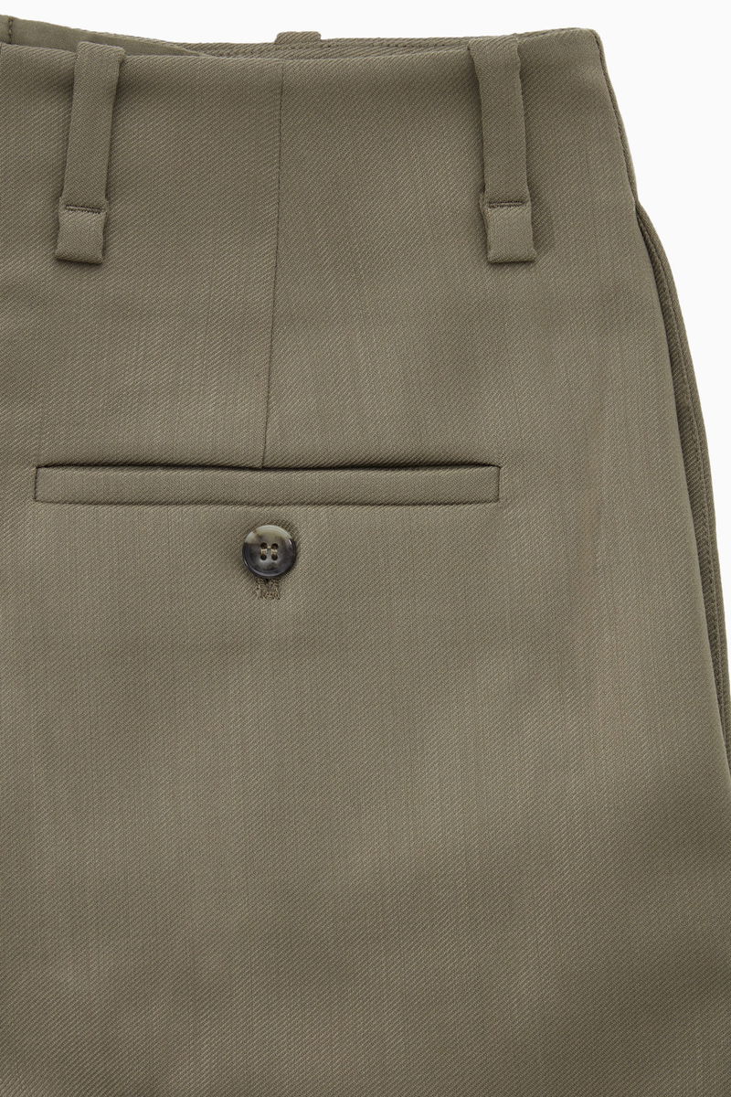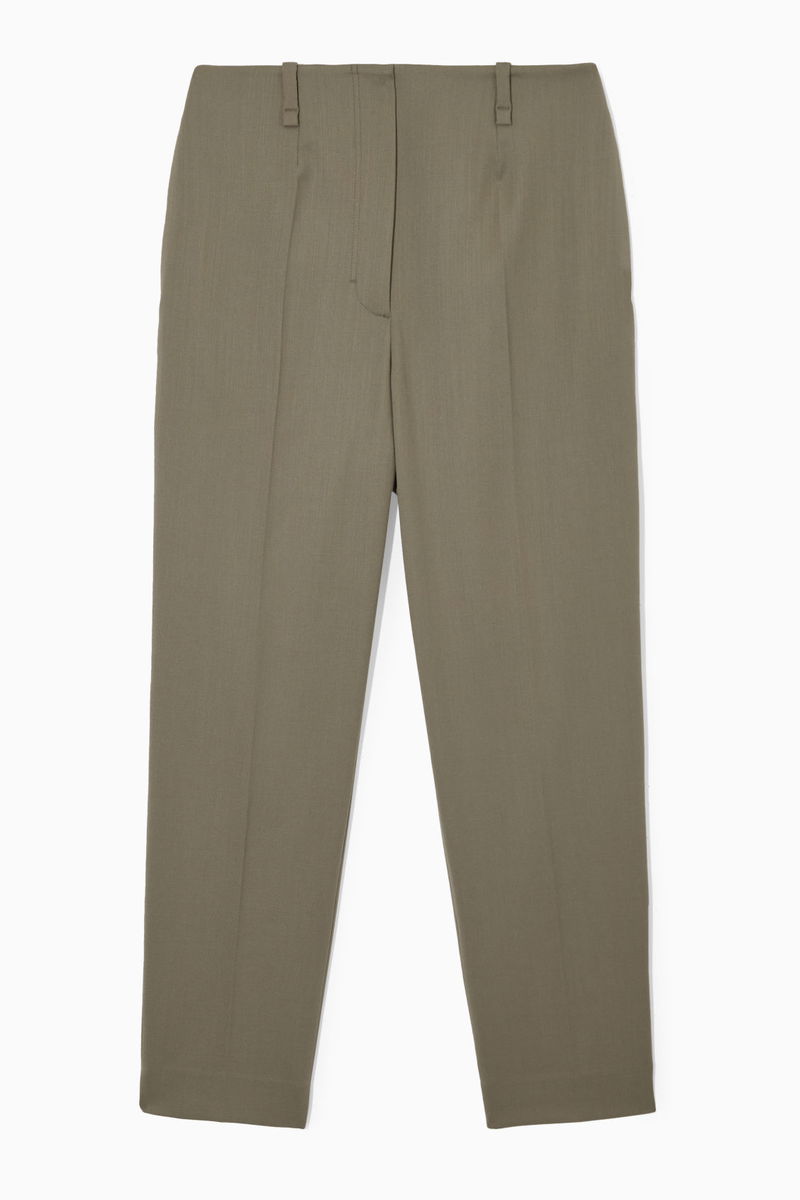 These trousers can be styled in a multitude of ways – wear them with a turtleneck or the matching blazer. Made from wool-blend twill, they're tailored with a high-rise waist, tapered legs and front and back press creases for shape. The dusty khaki-green shade is muted and timeless.