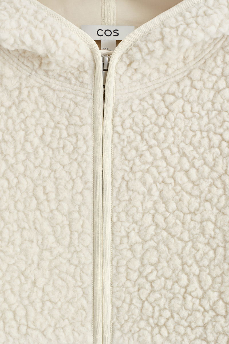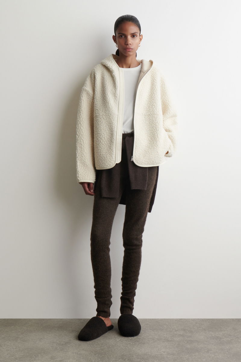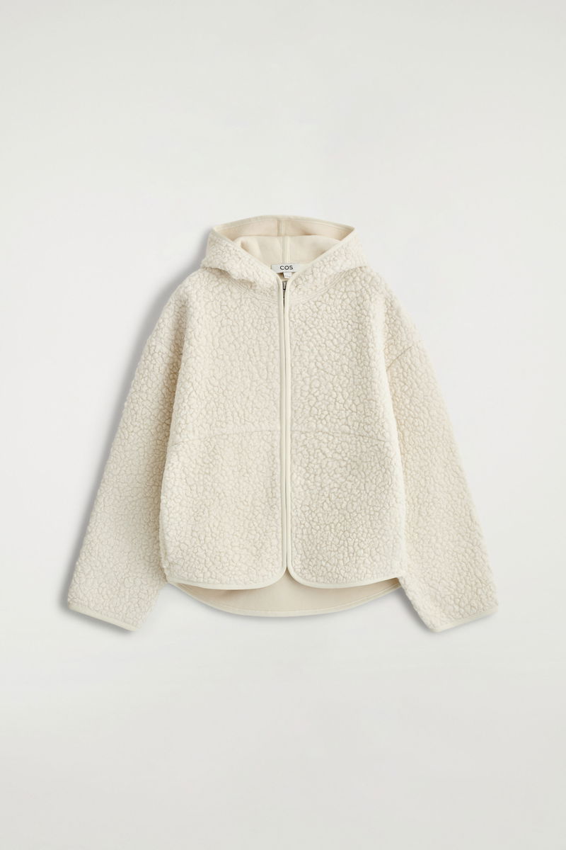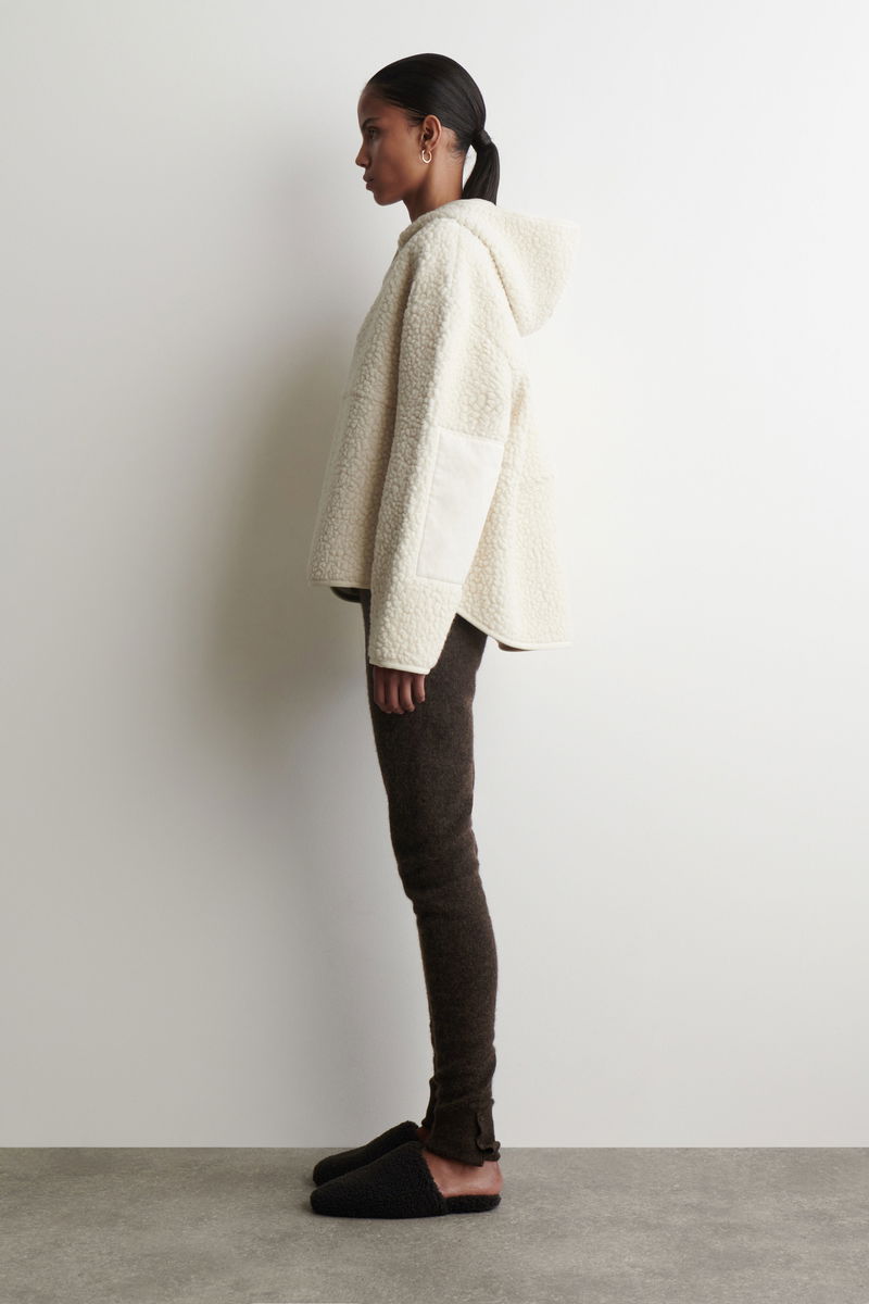 This season, the COS designers reframe winter sportswear through an elevated lens. This cosy jacket is made from luxuriously tactile teddy with a hint of wool for warmth and features an enveloping hood, side pockets and woven panels on each elbow. Style it with leggings.