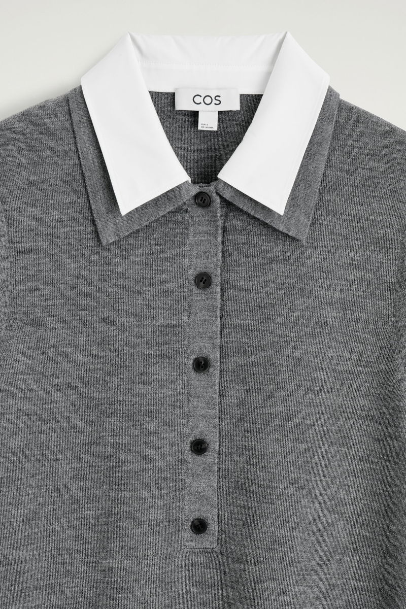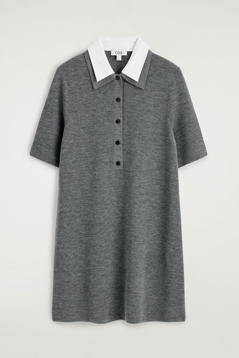 Riffing on the classic polo, this dress is knitted from luxuriously soft merino wool. It's cut in a mini A-line shape and features a contrasting cotton-poplin overlay at the collar. Style it with trainers to lean into its athleisure roots.