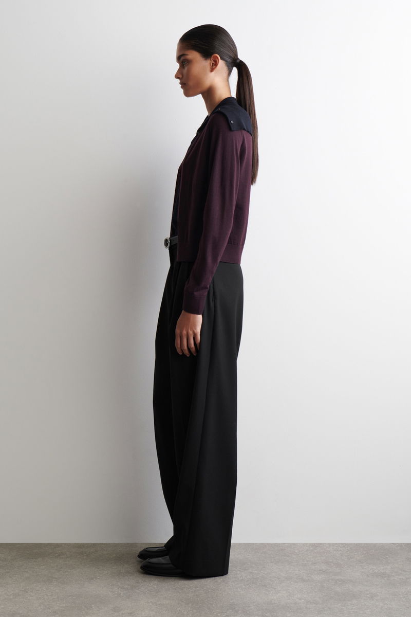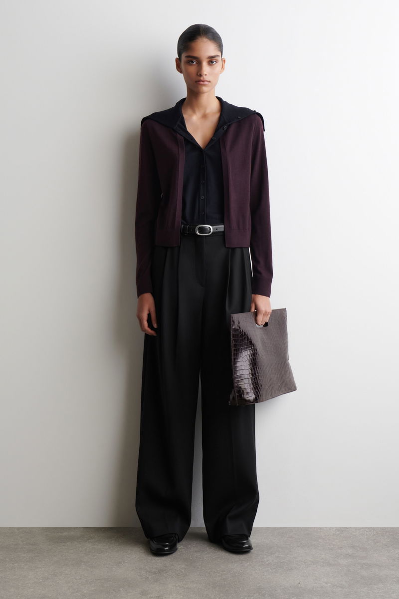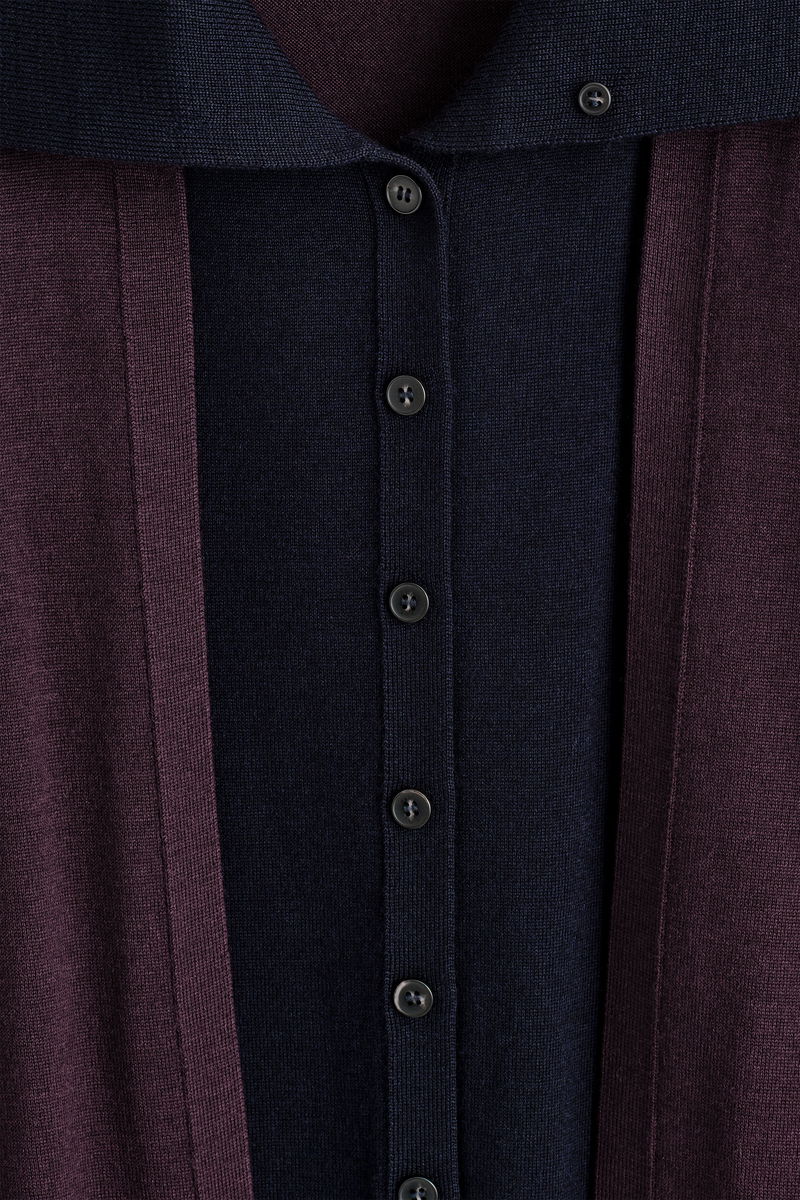 Layering is a key tenet of the autumn/winter wardrobe. This modern cardigan is knitted from fine merino wool and has a funnel-neck underlay that looks as though it's been effortlessly layered underneath. The high collar can be worn buttoned up or folded down over the shoulders.