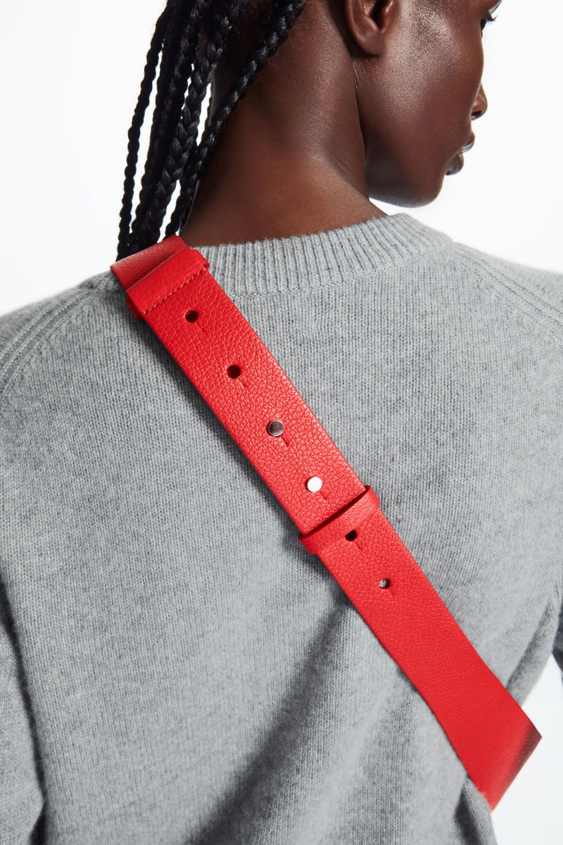 Made from leather in a smooth-grain finish, this crossbody bag has an adjustable strap with zip closure. The mood-boosting red hue will bring a welcome pop of colour to neutral outfits.