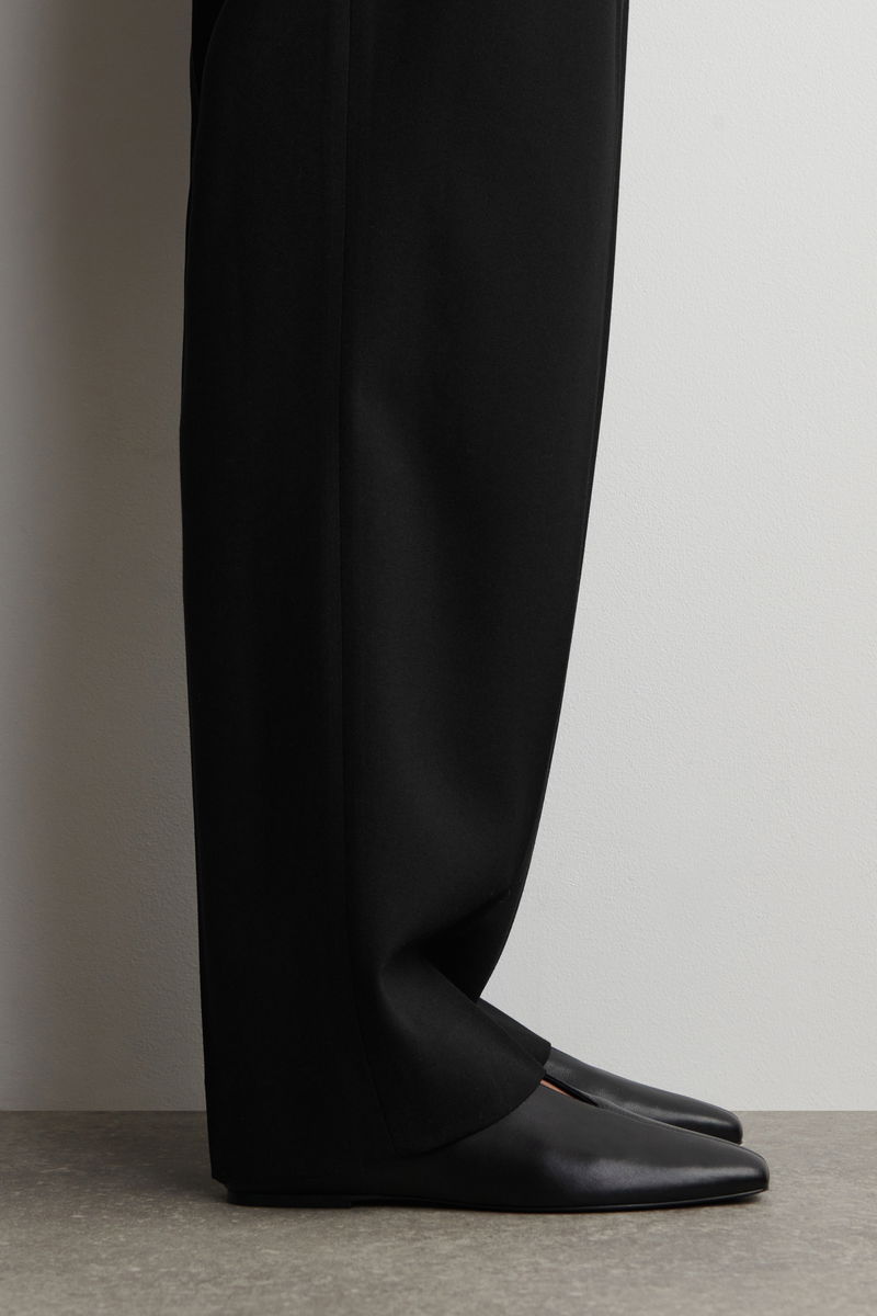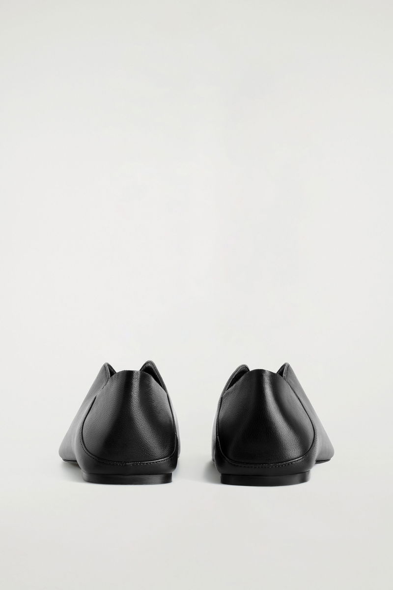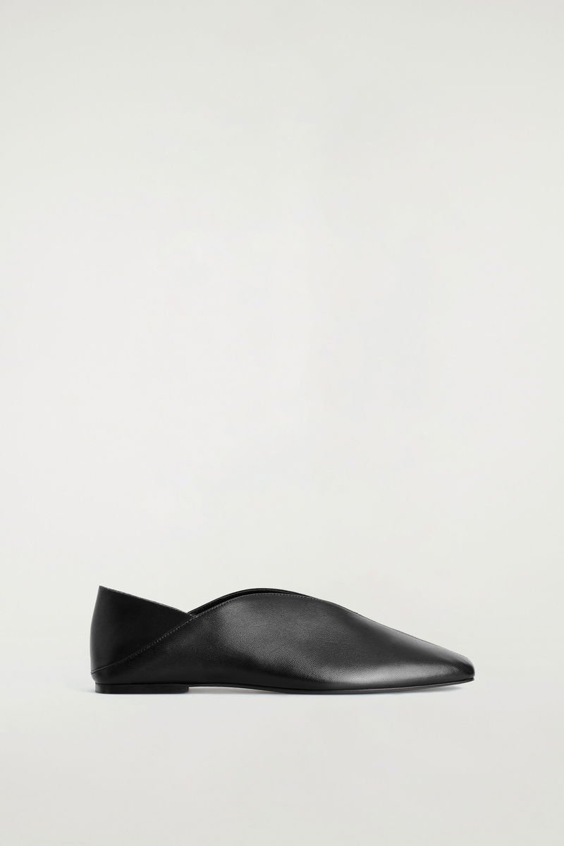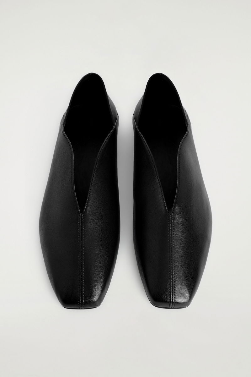 Rendered in a classic black tone, these modern mules are crafted from chrome-free leather and shaped in an angular silhouette – note the V-shaped vamp and square toes. They're finished with an overlapping detail at the sides.