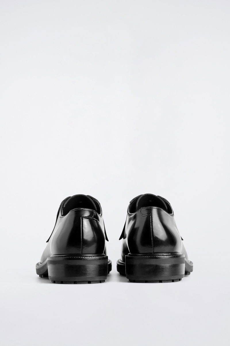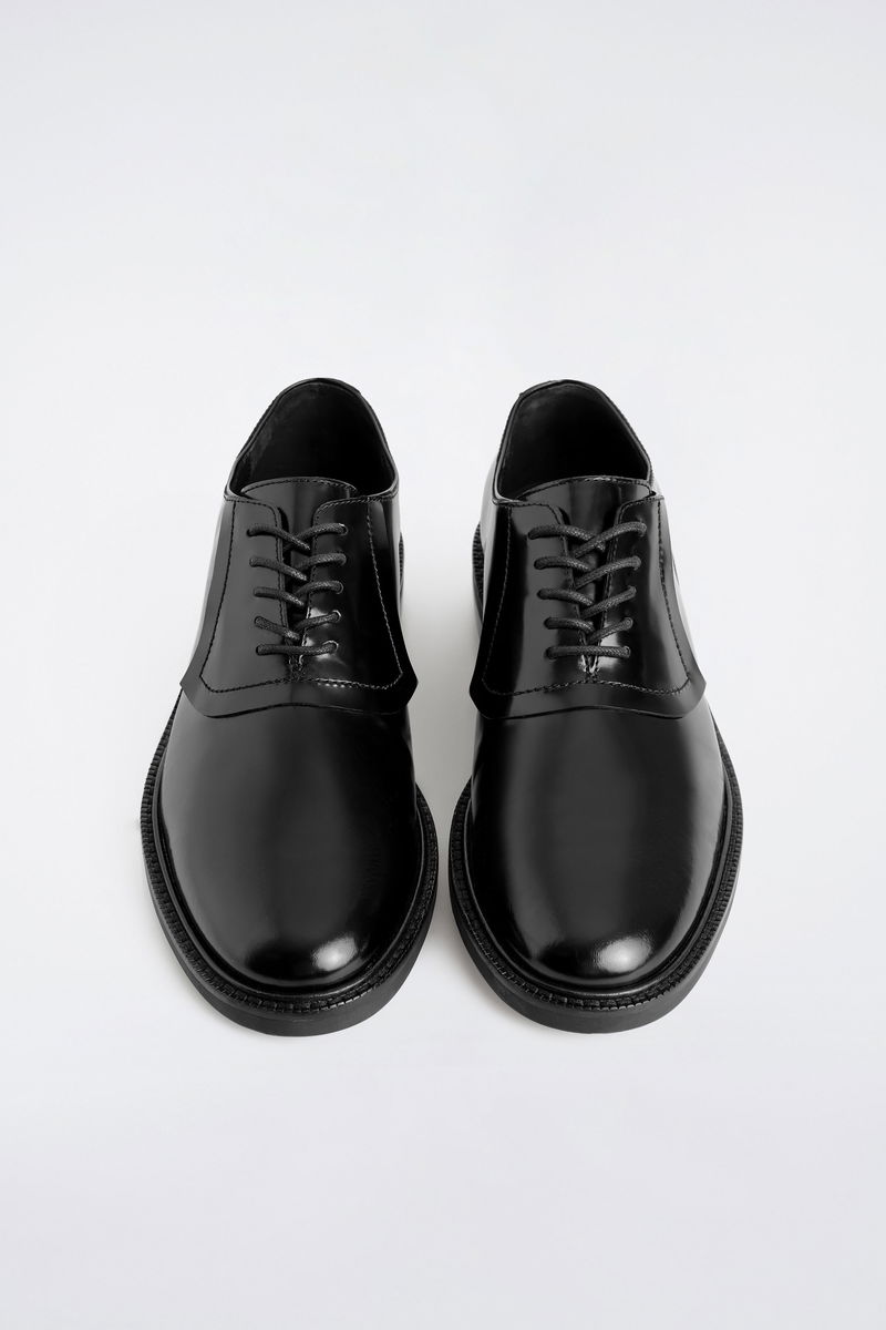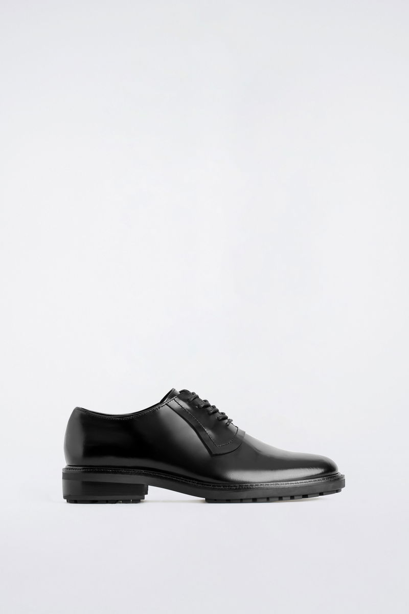 The COS footwear collection is led by modern design and quality craftsmanship. These refined Oxford shoes are crafted from patent leather in a rich Bordeaux hue and feature neat laces, meticulous stitching and chunky tread soles. Style them with tailored pieces.