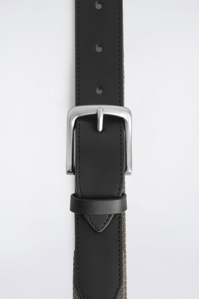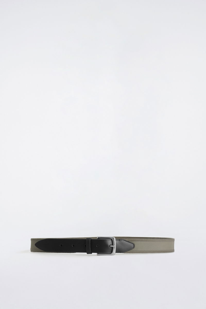 Utility continues to influence the COS menswer team this season. This modernbelt is made with layered webbing, nylon and leather strips and fastens with a silver-tone buckle.