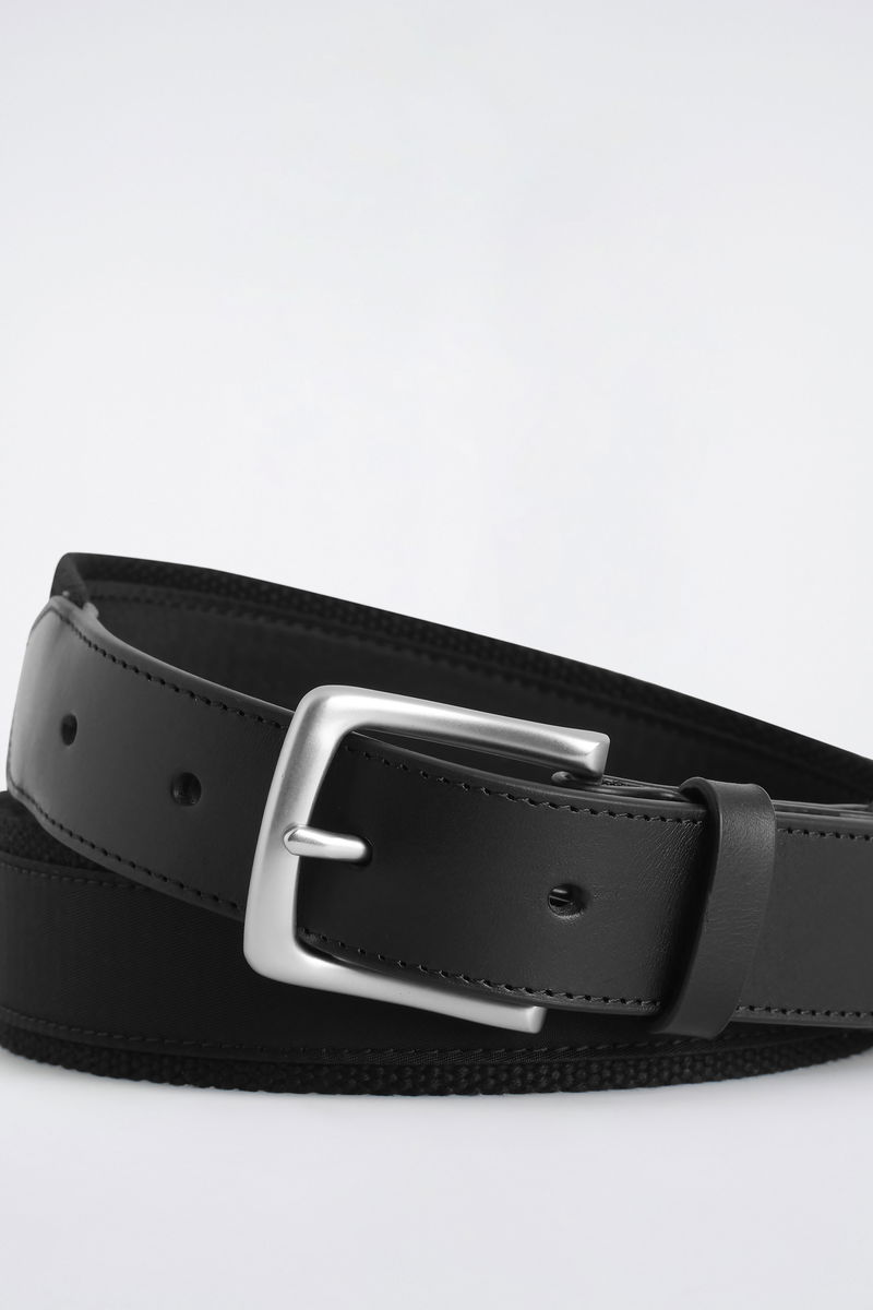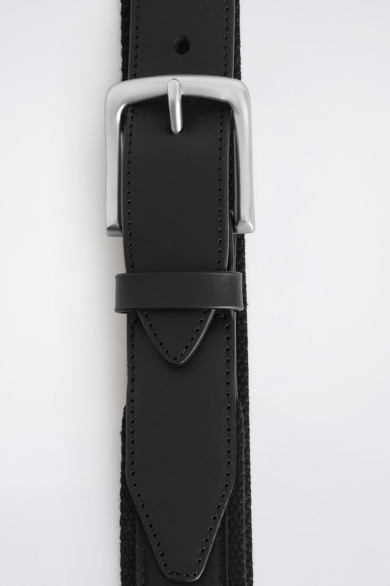 Utility continues to influence the COS menswer team this season. This modernbelt is made with layered webbing, nylon and leather strips and fastens with a silver-tone buckle.