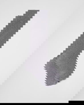 These classic boot socks propose a considered take on autumn/winter styling. They're knitted with wool and mulberry silk in a ribbed construction and have an elongated shape that be folded down over your boots.