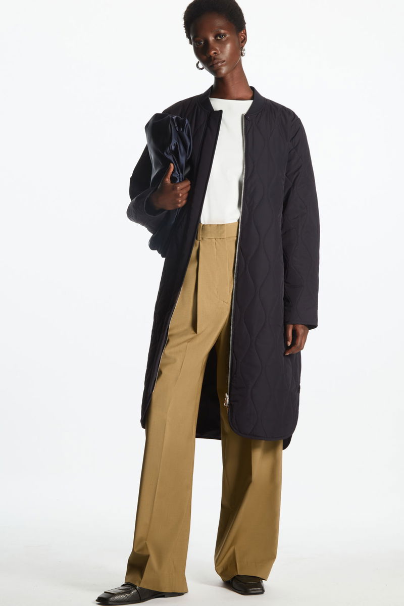 Crafted from recycled fabric in versatile khaki, this longline padded liner jacket is cut for a regular fit and features a double-ended zip closure and a comfortable ribbed round neck to keep the heat in on cooler days. The internal drawstring toggle allows you adjust the silhouette.