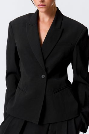 Oversized tailoring. Designed with a classic half lined inner with and slanted shoulder seam to add this relaxed fit.