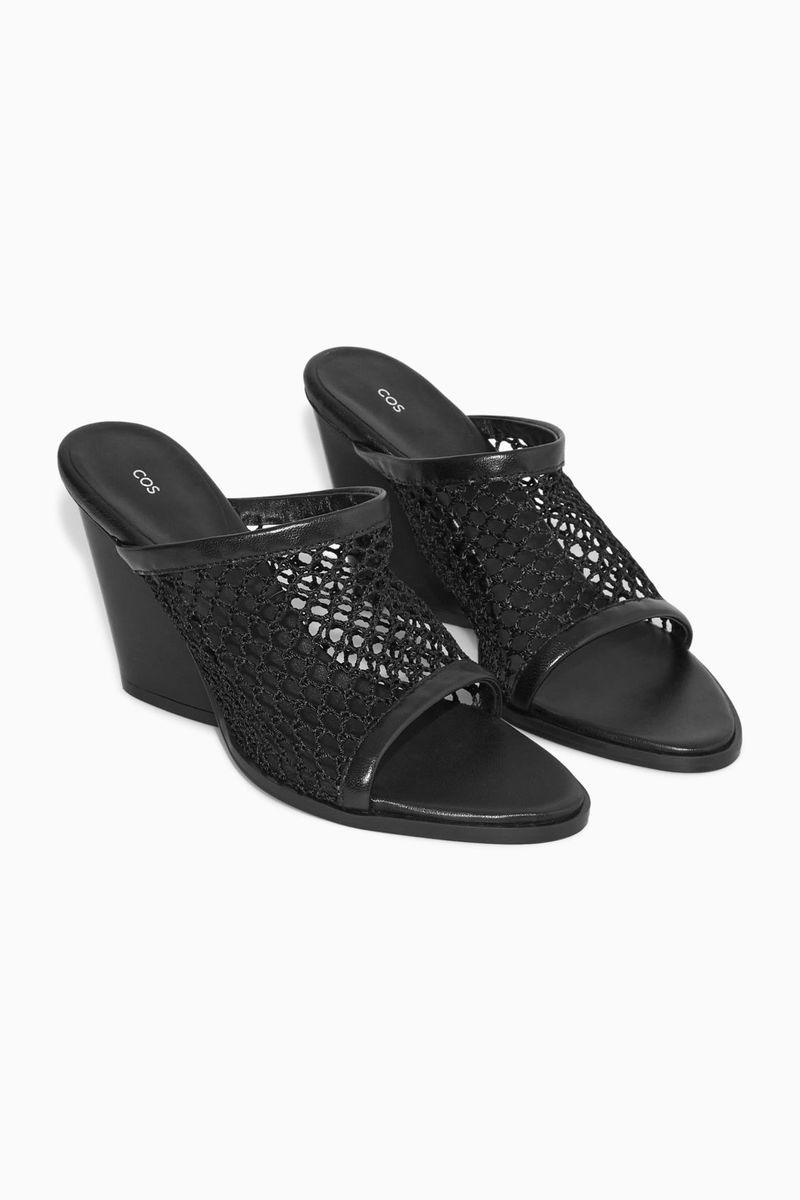 The COS womenswear team looked to sculptural shapes to inform the silhouette of these wedge-heel sandals. Crafted by artisans in Italy, they reach a towering 8cm height and have wide mesh straps and butter-soft leather footbeds for comfort. Wear them with the brand's signature tailoring.