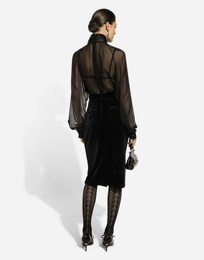Powerful in its simplicity, this pencil skirt is crafted from soft fluid fabric in an enduring black tone. It's cut in a straight silhouette with a front vent for movement and darts that shape the waist.