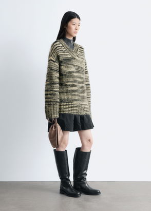 Combining a blush pink hue with a tactile mohair and wool-blend, this loose-fitting knit is a cosy wardrobe staple. Ribbed detailing adds a modern finish.