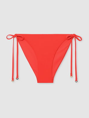 This soft cup bikini top is made from a smooth stretchy fabric with a fabric-covered O-ring at the centre. A summer essential, it is secured with straps designed to be tied at the back. For a complete set, wear with its matching item.