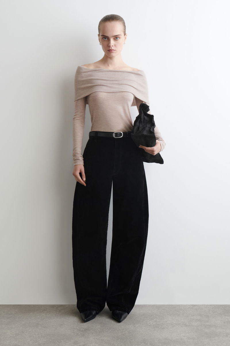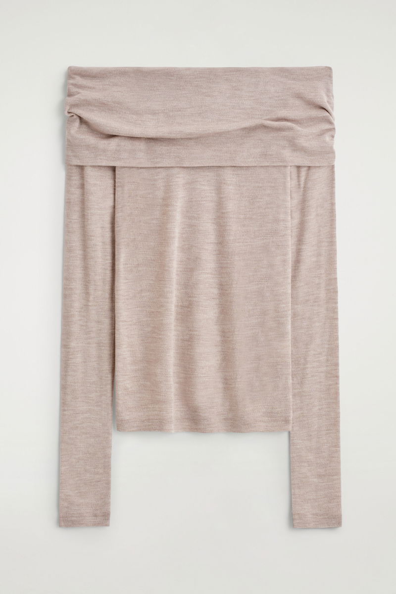 This modern off-the-shoulder top is designed with a bardot detail to elegantly frame the décolletage. It's cut in a form-fitting slim shape and crafted from pure merino wool.