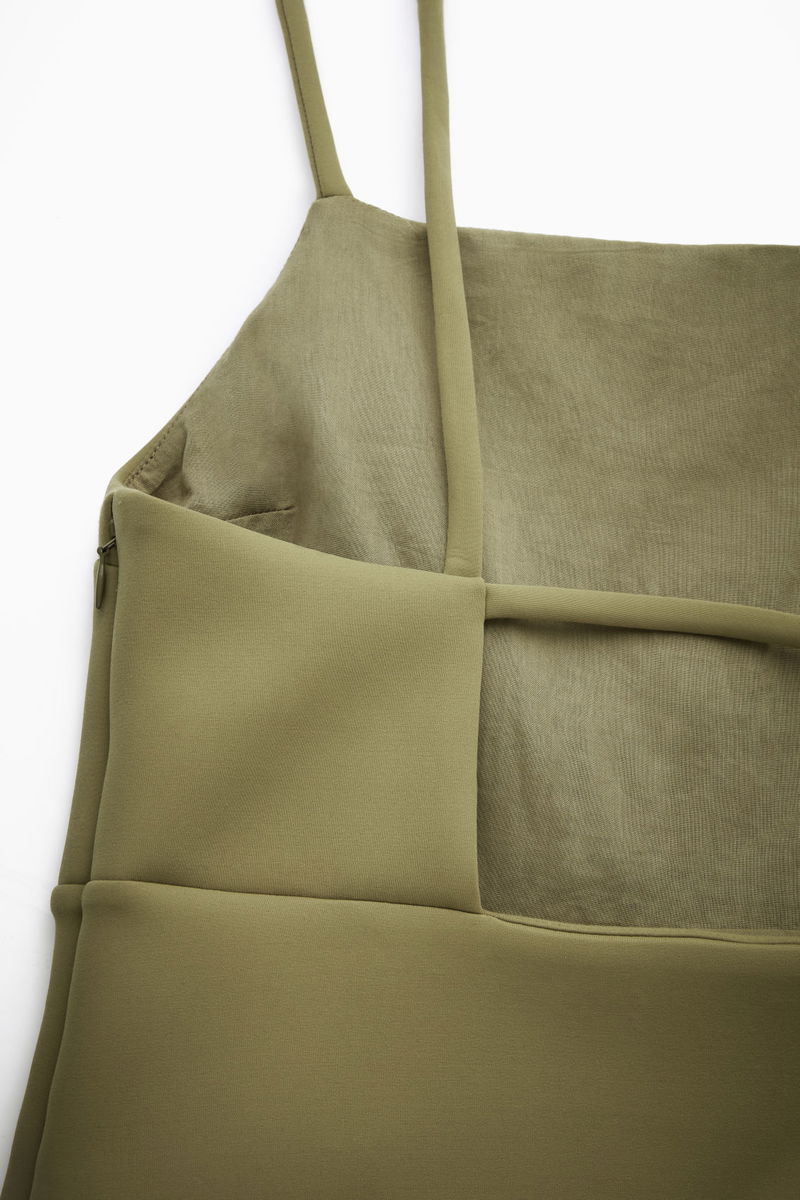 Crafted from a recycled fabric blend with a touch of stretch for movement, this mini dress is cut for a regular fit with a square neck and subtle A-line hem. The narrow straps and cutout back make it a perfect piece for balmy summer evenings.