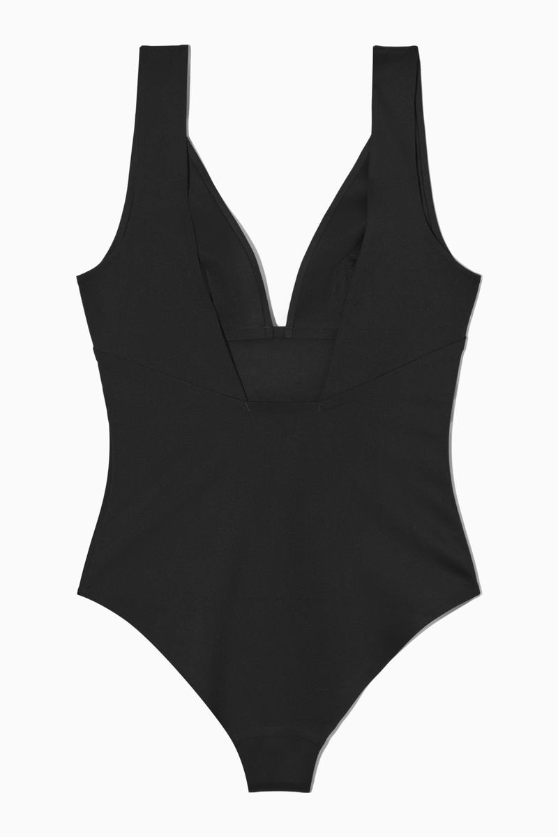 This swimsuit is designed for days spent poolside, but it'll look just as good tucked into shorts on your beach stroll. Crafted from smooth, stretchy scuba, it's shaped with a plunging V-neck and has medium coverage and clean, bonded seams for long-lasting wear. This swimwear piece has flattering darts at the bust.