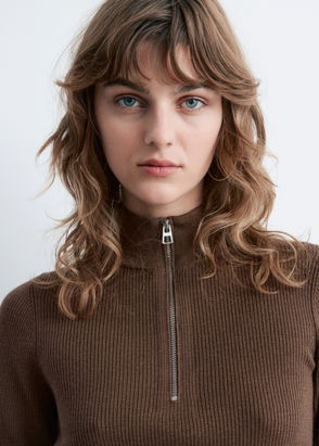 Peppered with textural flecks, this chocolate-brown jumper is knitted from weighty RWS wool that's blended with cotton for breathability.