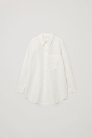 Oversized shirting, the COS way. Fabricated from linen cotton blend, this long-sleeve shirt has a boxy patch pocket and a curved hem.