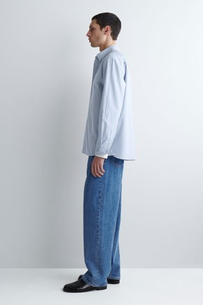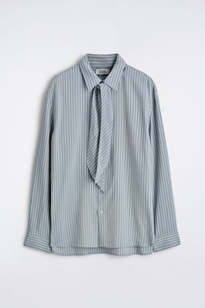 Classic workwear continues to inspire the COS menswear team this season. This long-sleeved shirt is cut in an generous shape and features a pointed collar, tonal buttons and a pair of oversized utility-style flap pockets at the chest. The dusty-blue organic-cotton twill fabric is blended with TENCEL™ Lyocell for an easy drape.