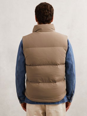 Part of the edit, this padded gilet is crafted from 100% recycled polyester and has practical features in abundance – note the drawstring hood, welt pockets and adjustable buckled tabs at the side. Layer it under a coat for extra warmth.