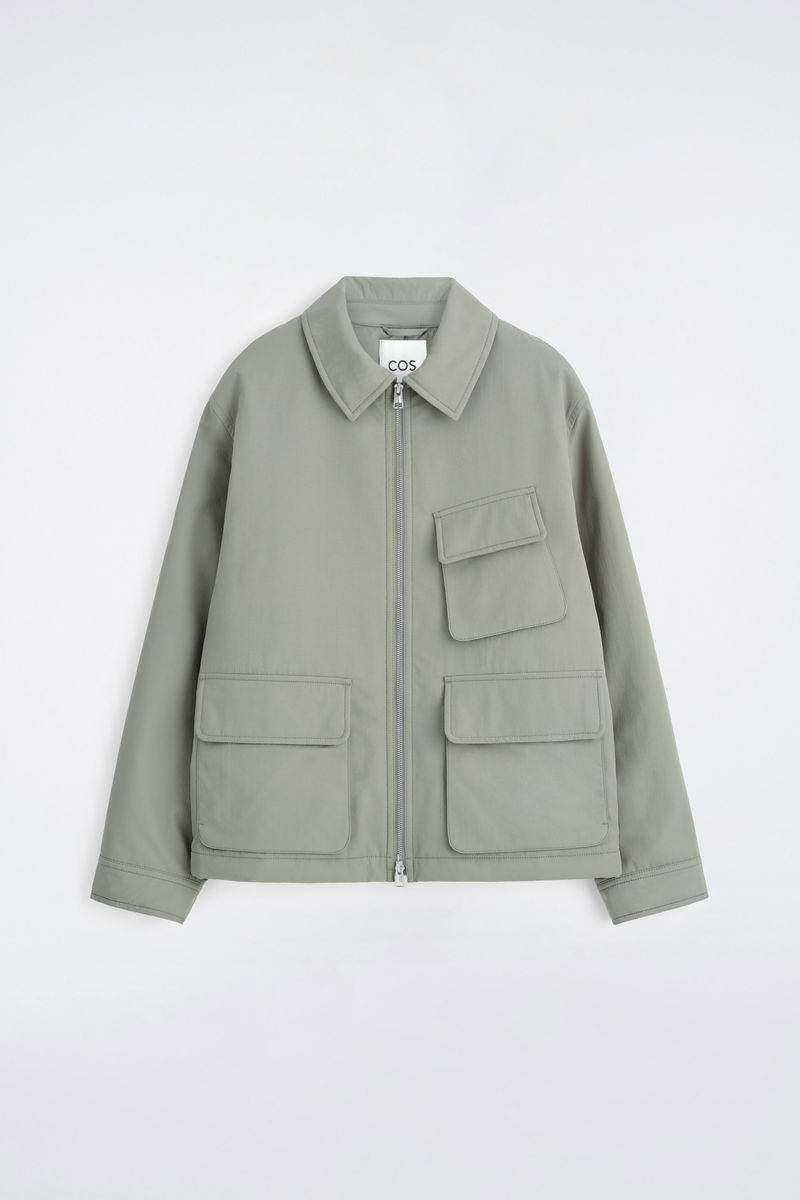 Cut in a relaxed shape, it's crafted from nylon and cotton in a versatile light-grey tone and features a padded lining for warmth. It's finished with patch pockets, an internal pocket and an elasticated hem.