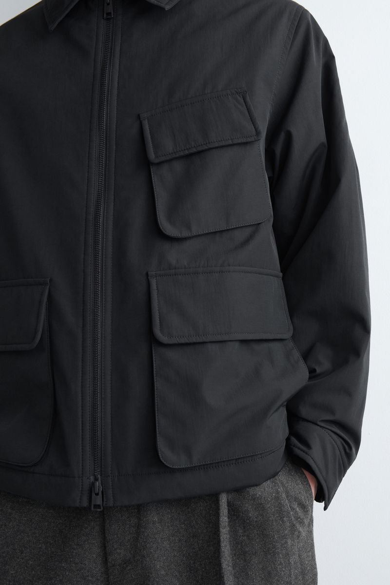 This modern Harrington jacket is great for transitioning between the seasons. Cut in a relaxed shape, it's crafted from nylon and cotton in a versatile light-grey tone and features a padded lining for warmth. It's finished with patch pockets, an internal pocket and an elasticated hem.